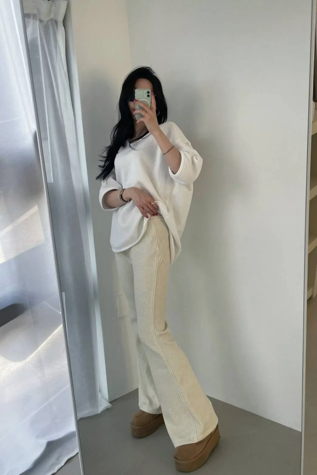 NaBe Korean-喇叭褲造型 內刷毛棉褲 顯瘦褲