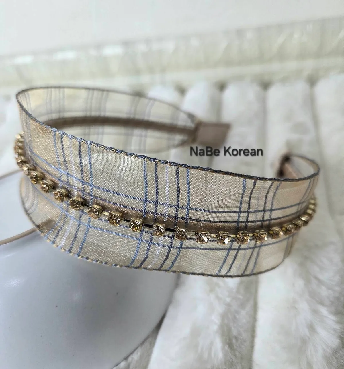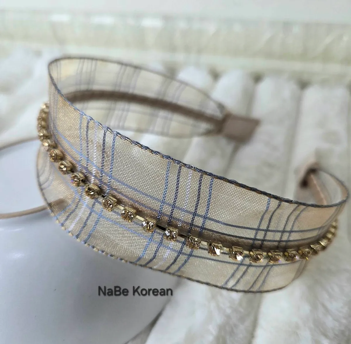 網紗格紋 優雅質感髮箍
