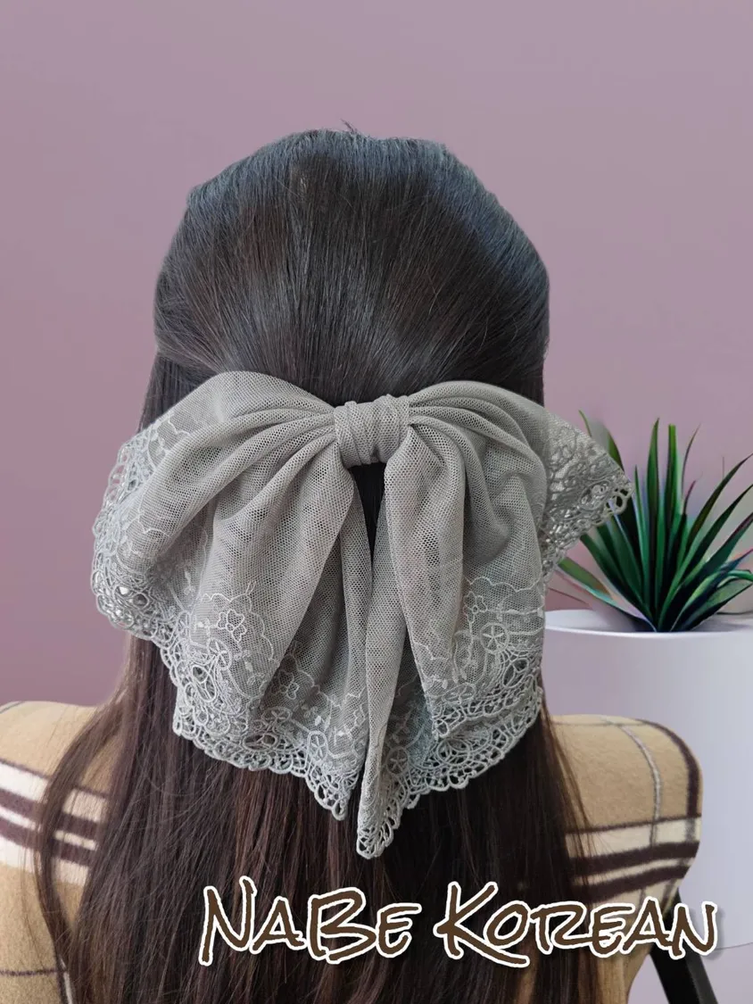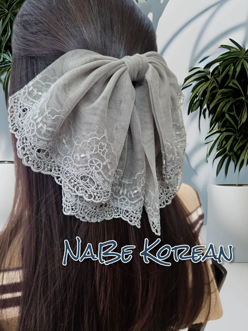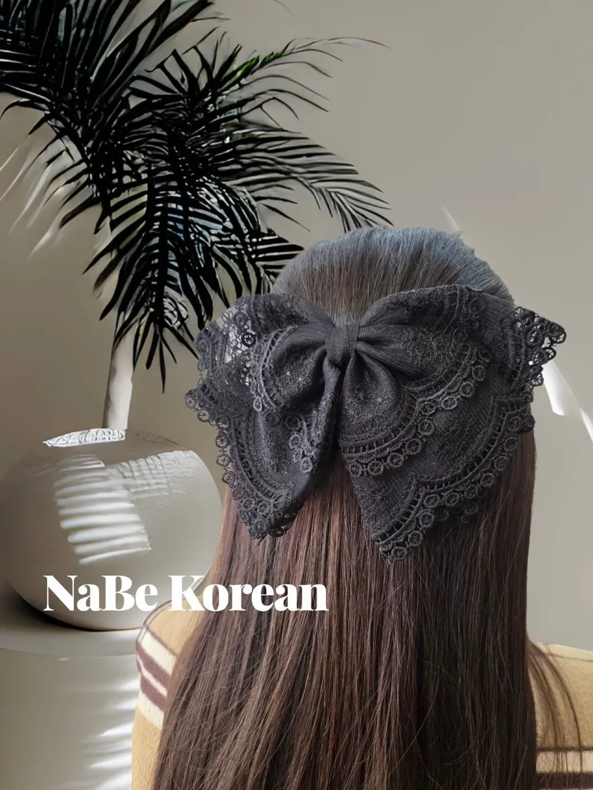 重工蕾絲 自然垂墜 蝴蝶結 彈簧髮夾 配戴富有氣質感