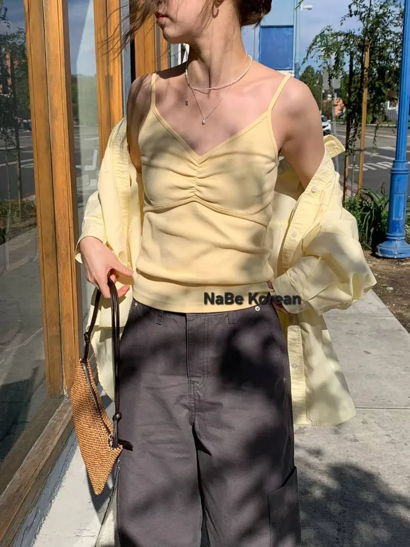 細肩帶 抓線條造型 純棉 質感上衣