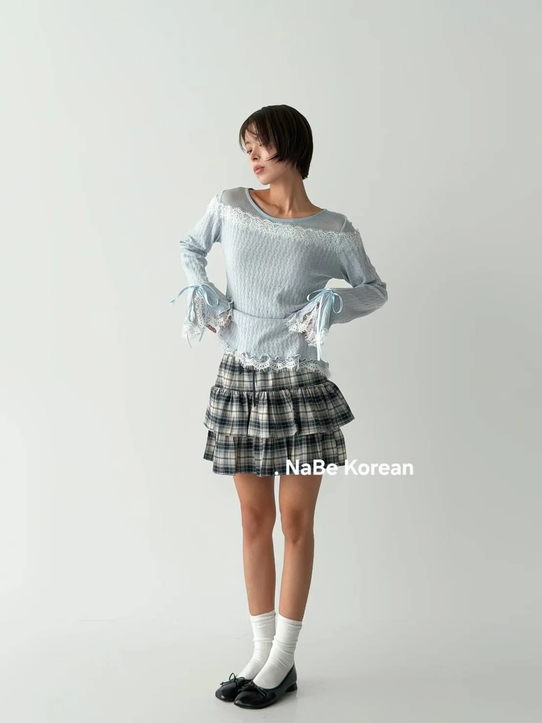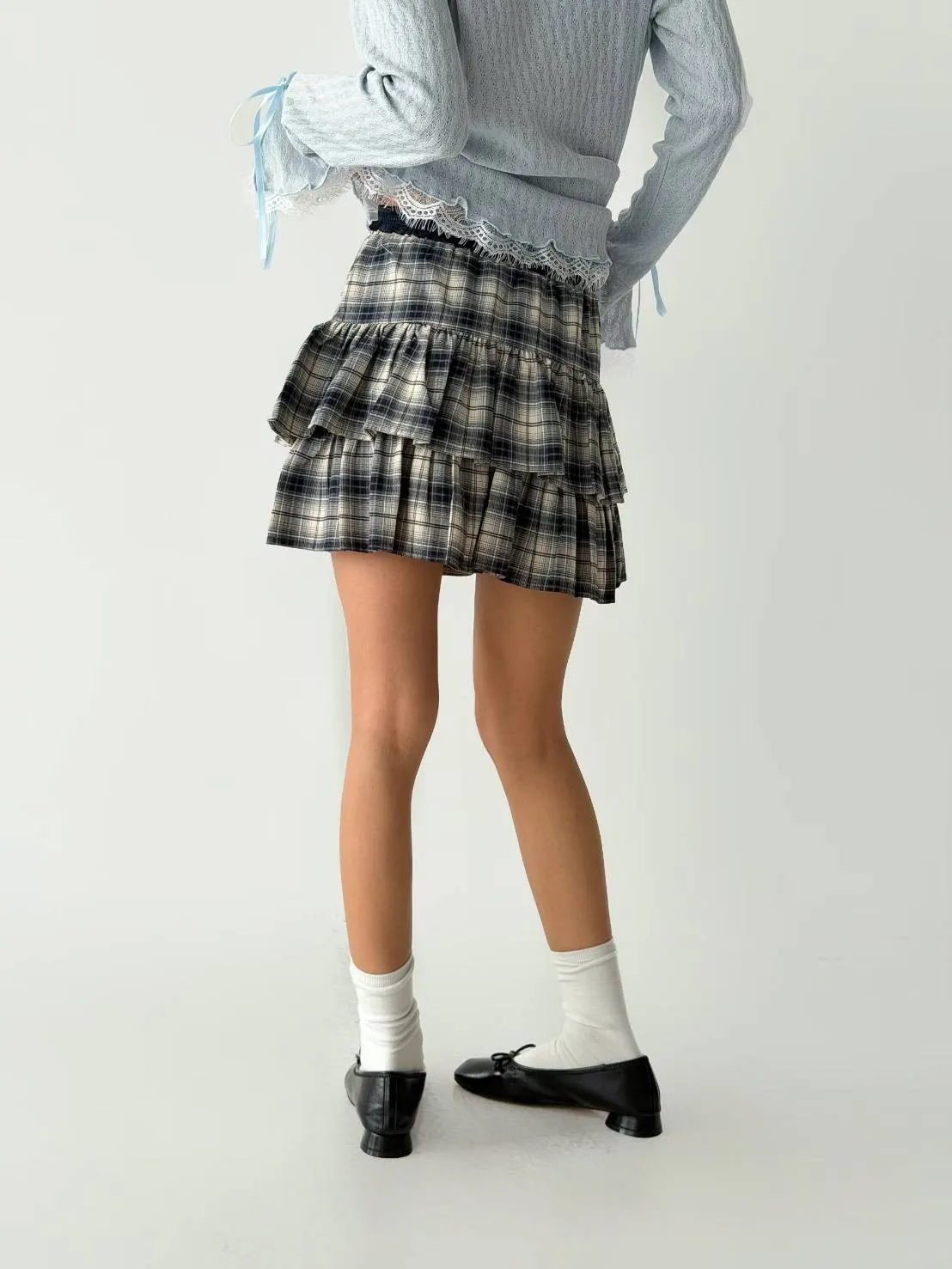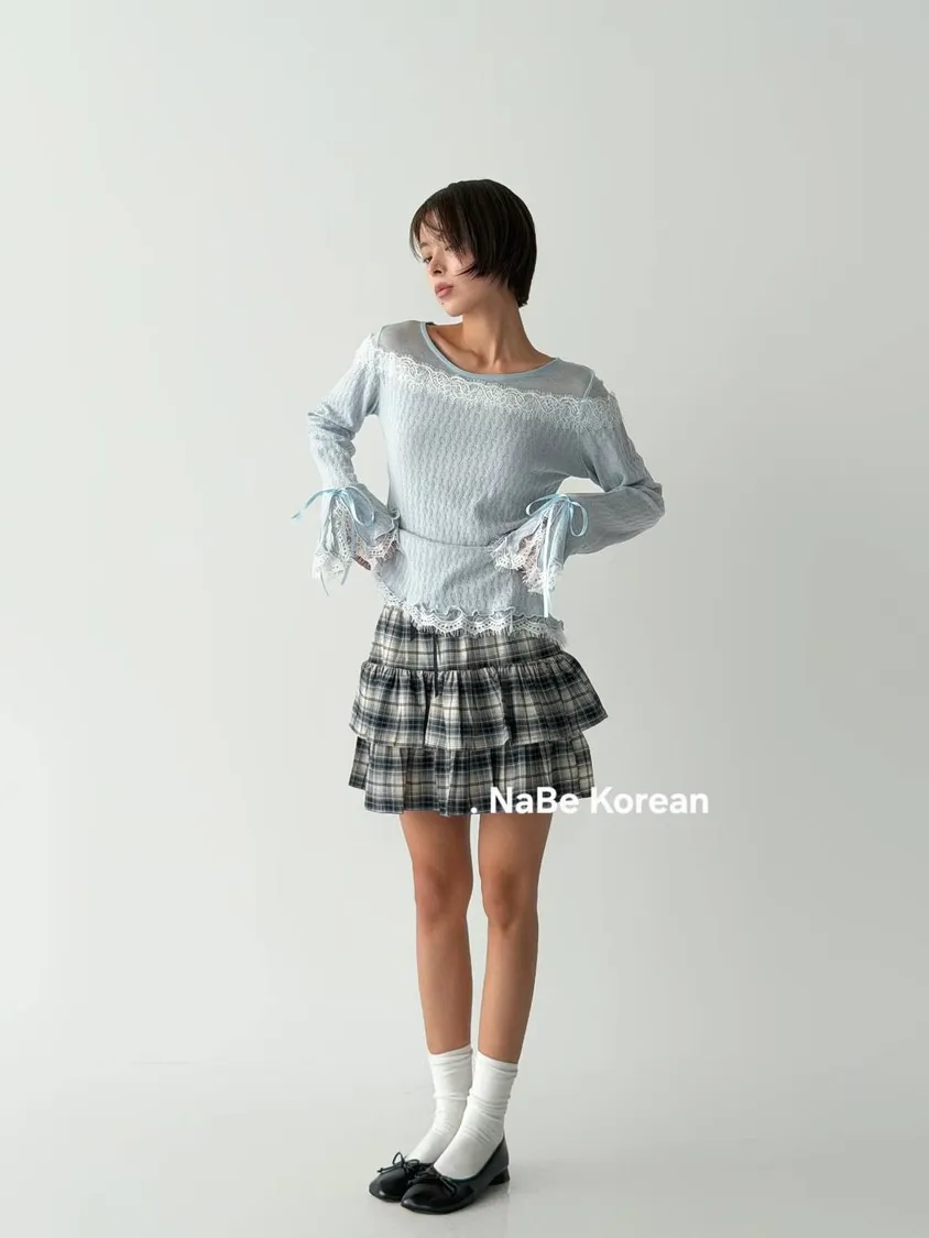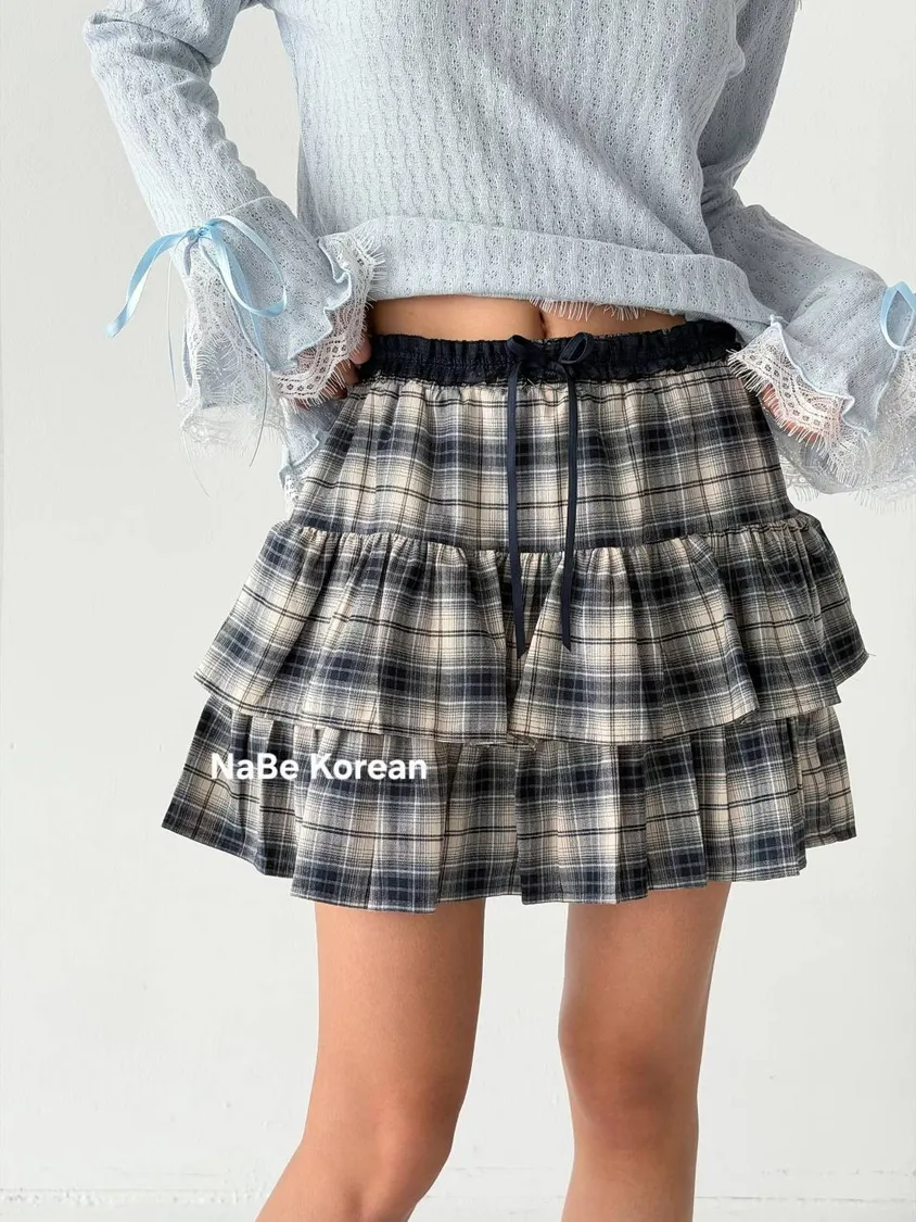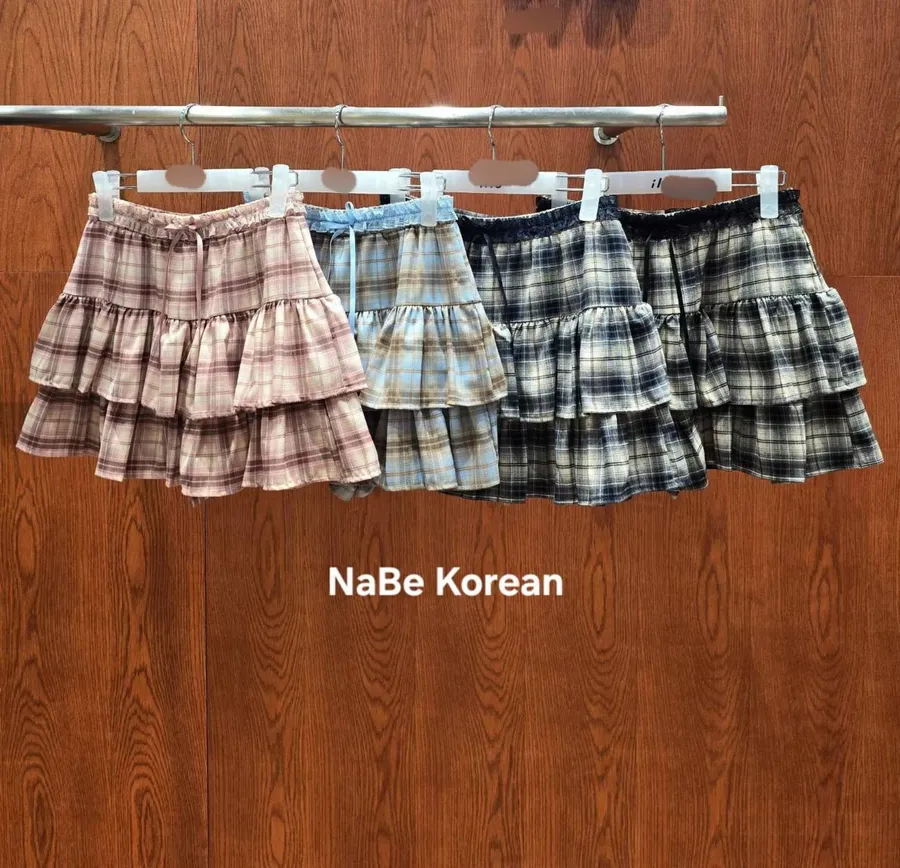 NaBe Korean-格紋 蛋糕褲裙 設計感 修身 活潑感