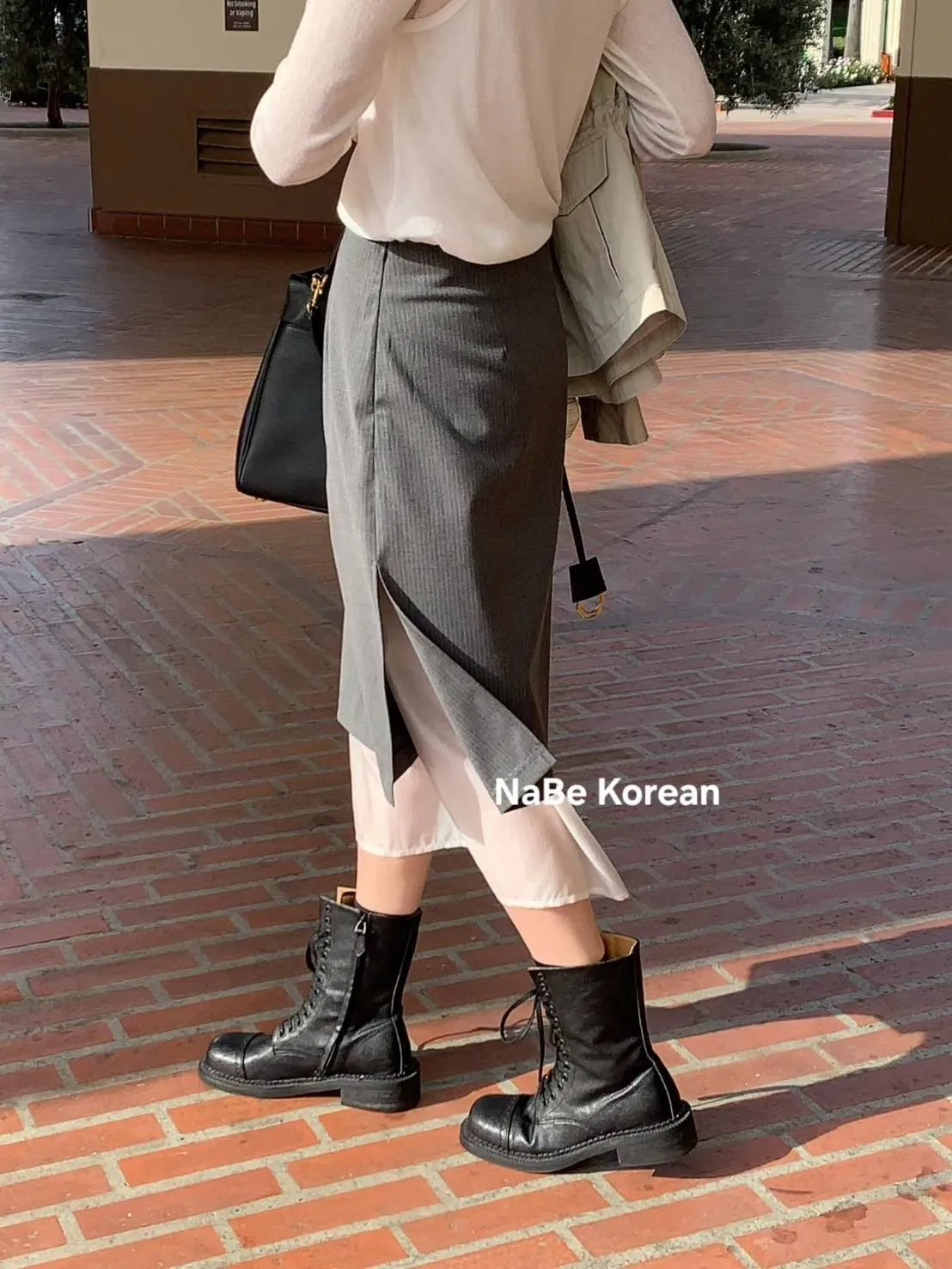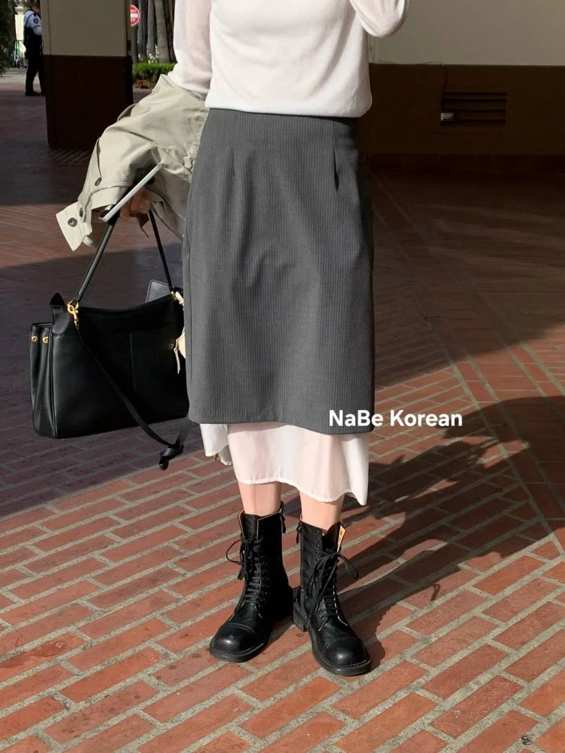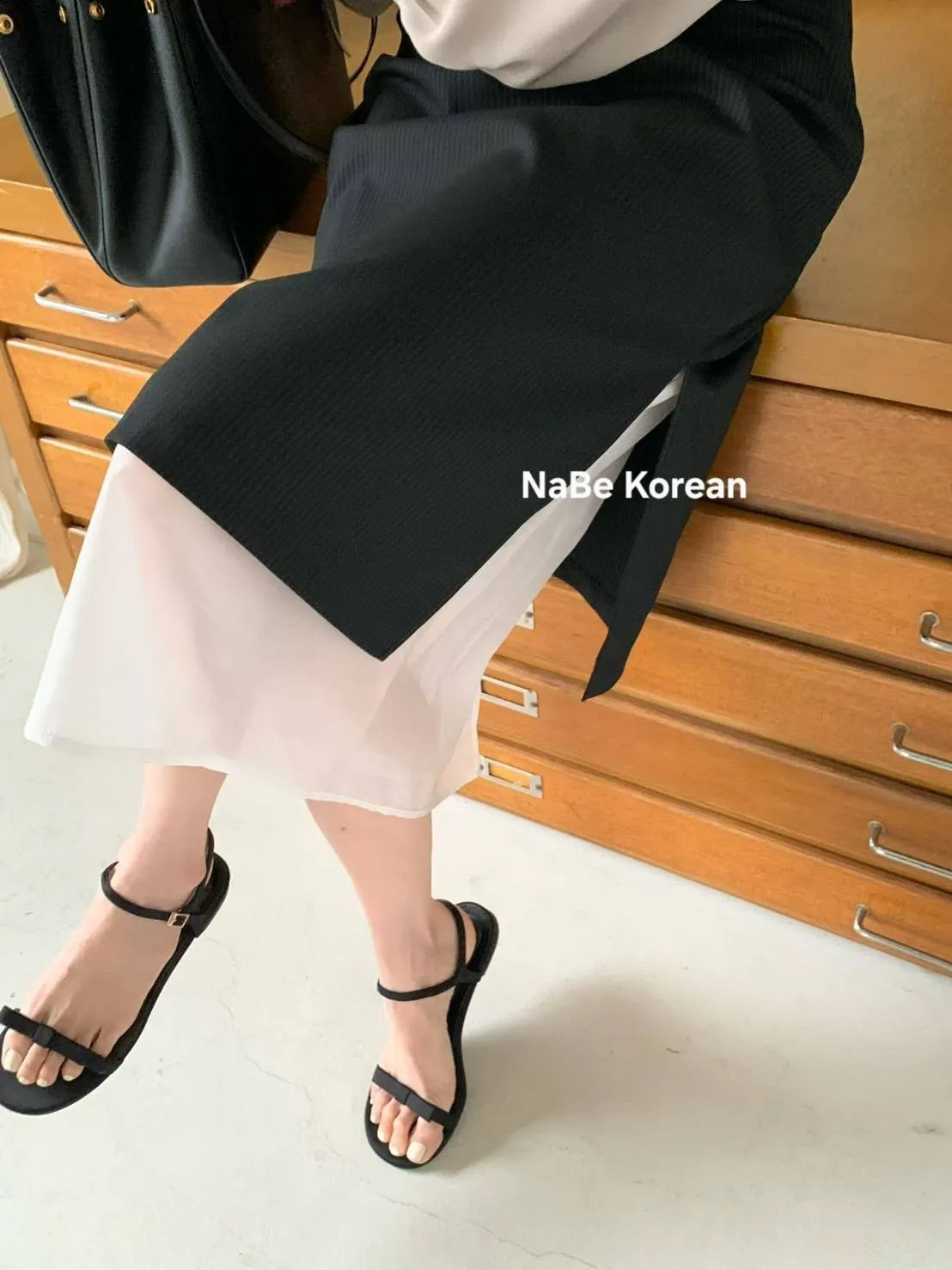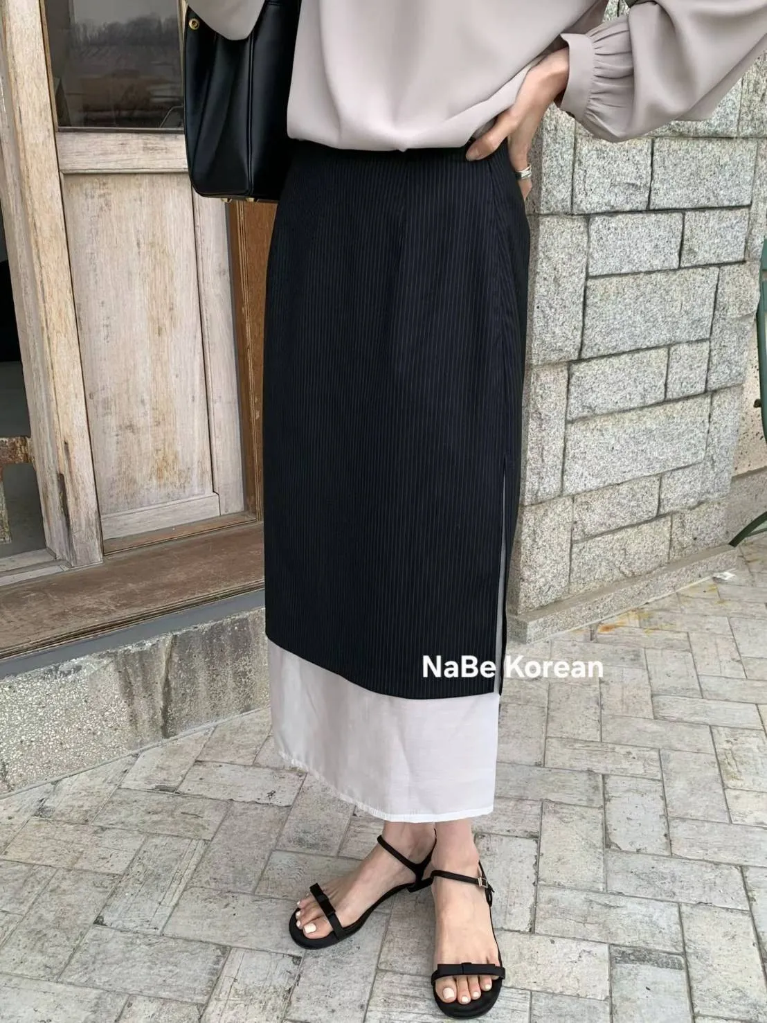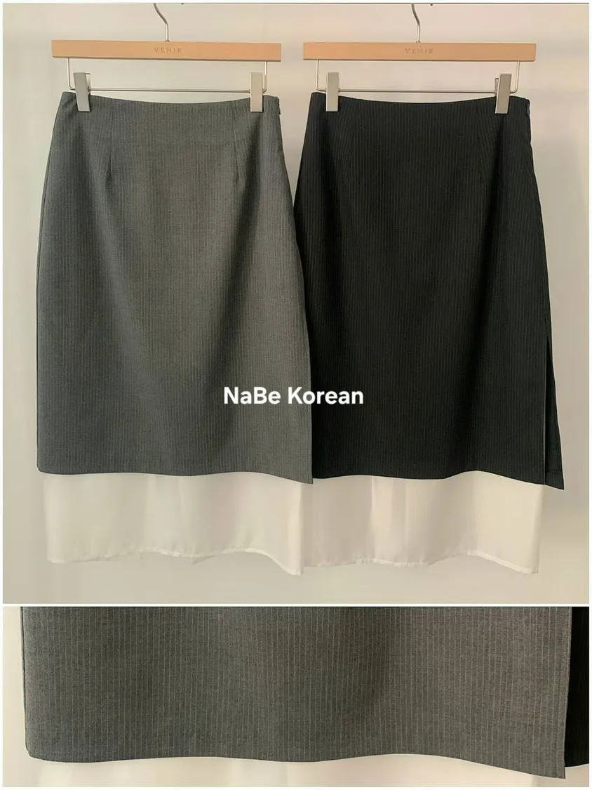 NaBe Korean-高質感半身裙 西裝布材質 優雅 層次感 雪紡拼接 半身群