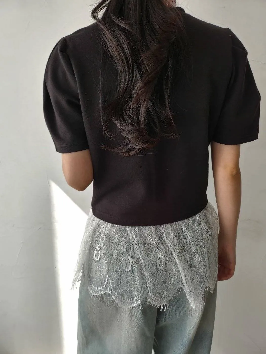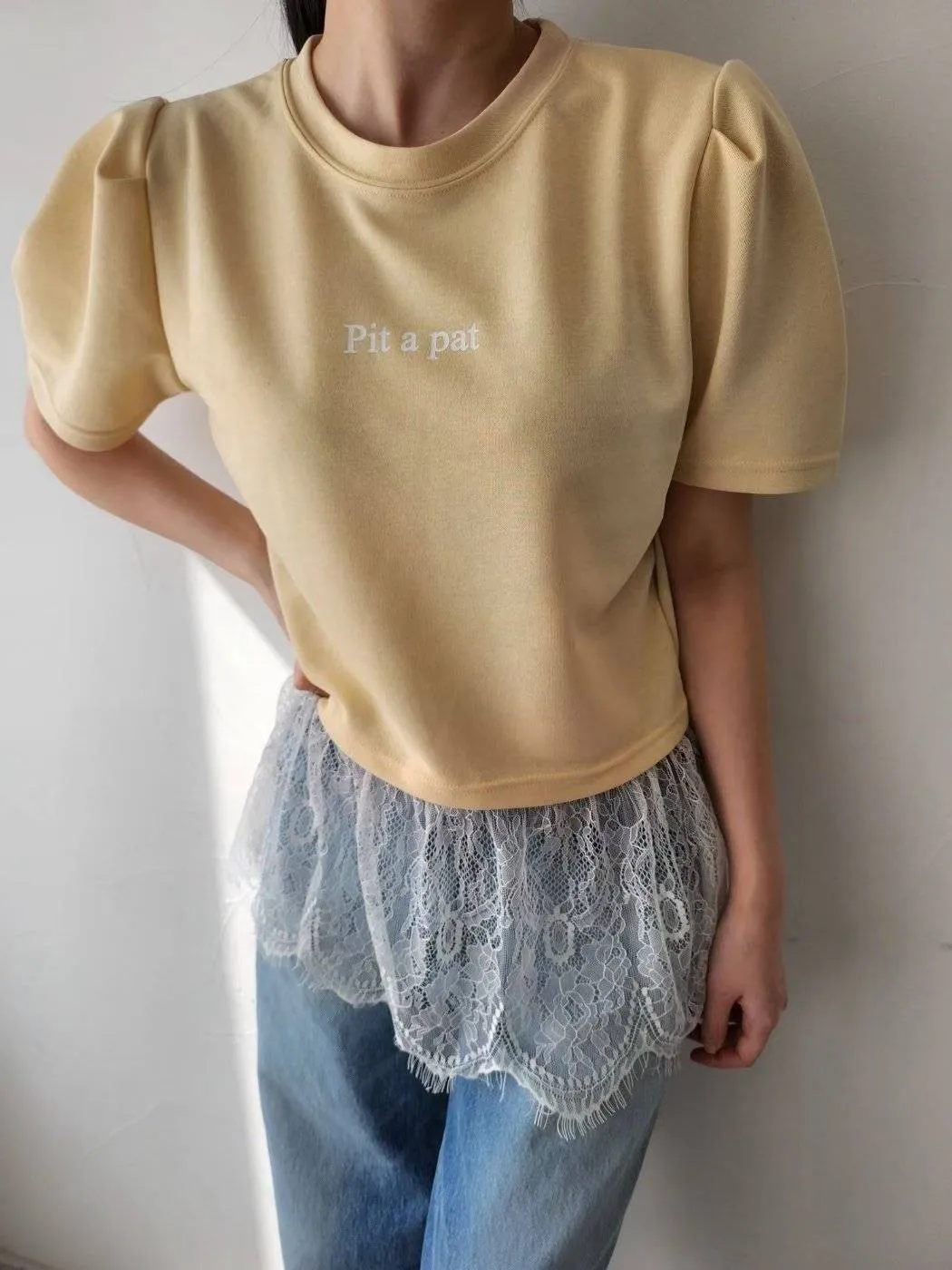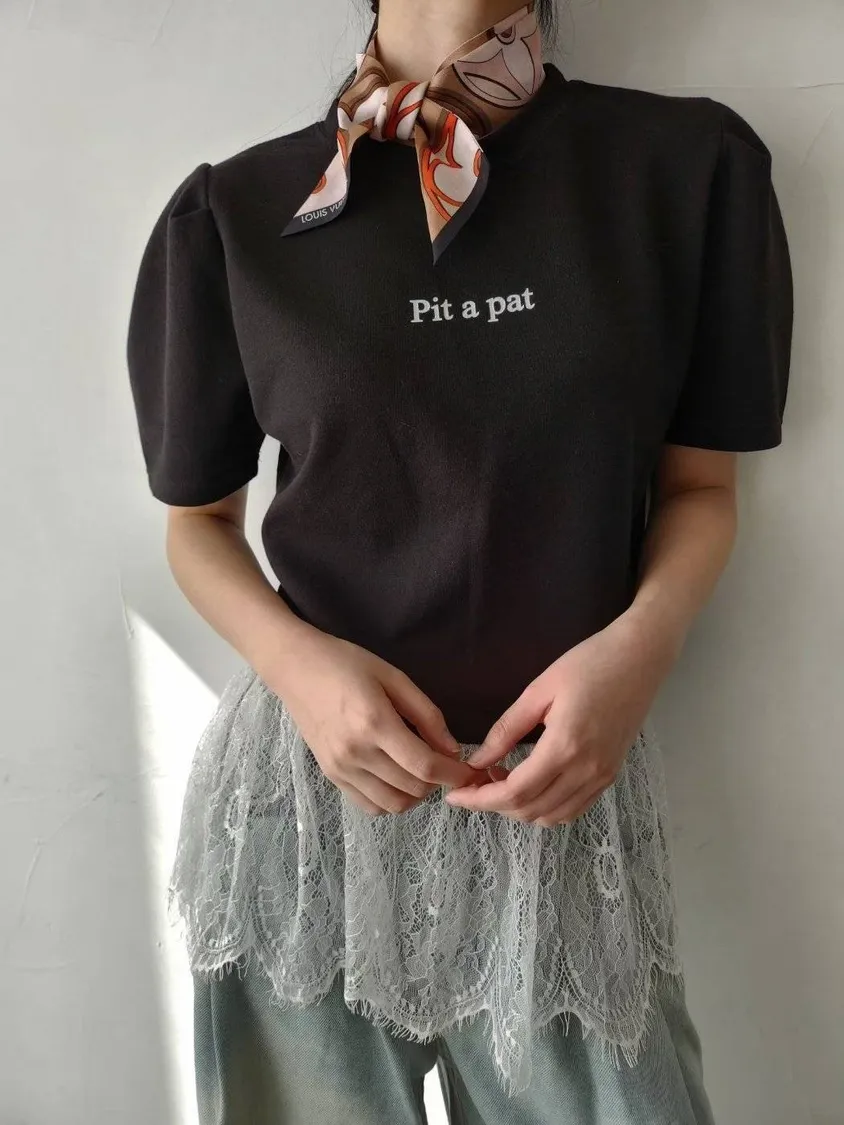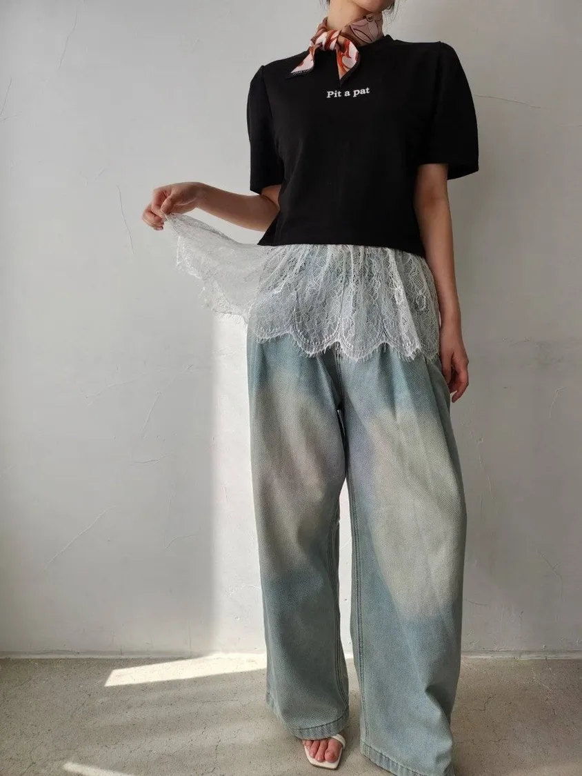 棉質拼接蕾絲上衣 優雅裙擺設計