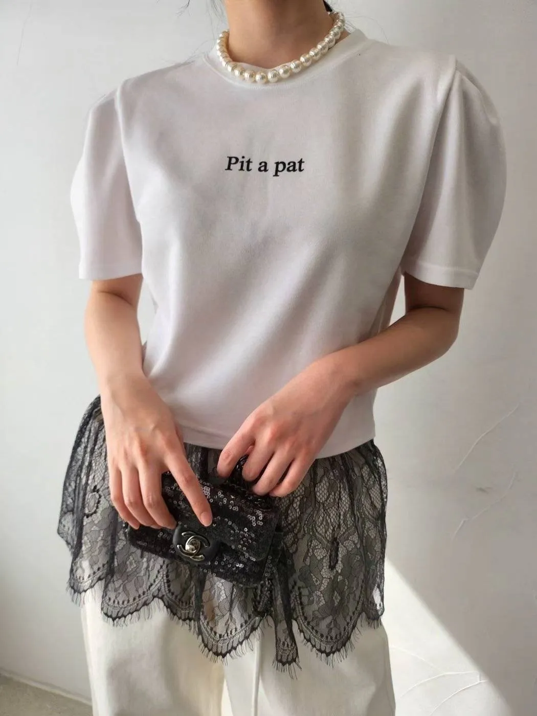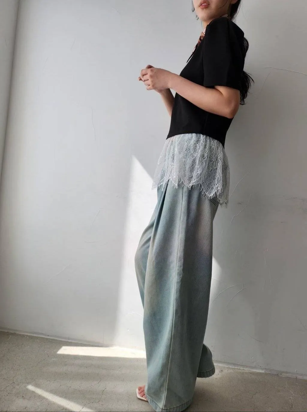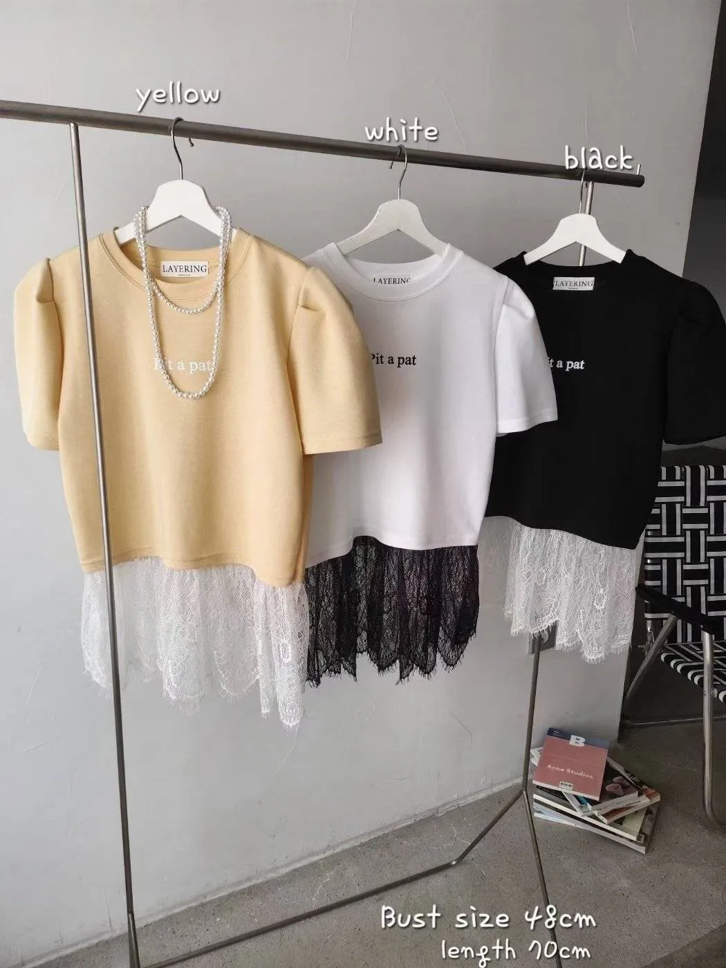棉質拼接蕾絲上衣 優雅裙擺設計