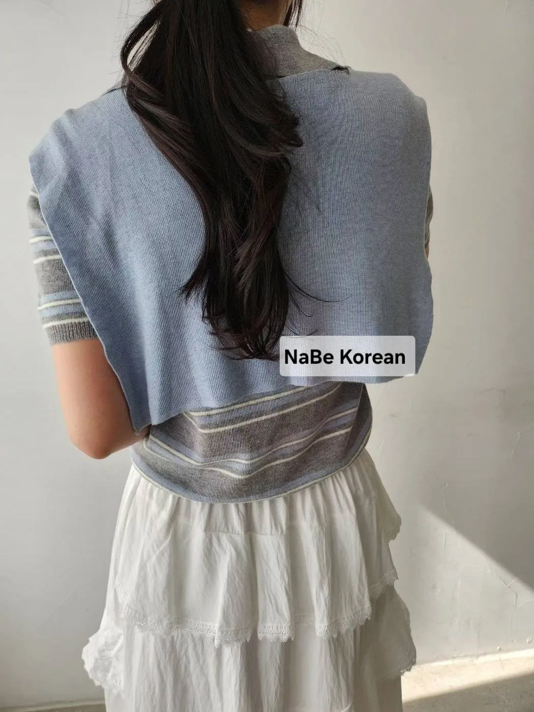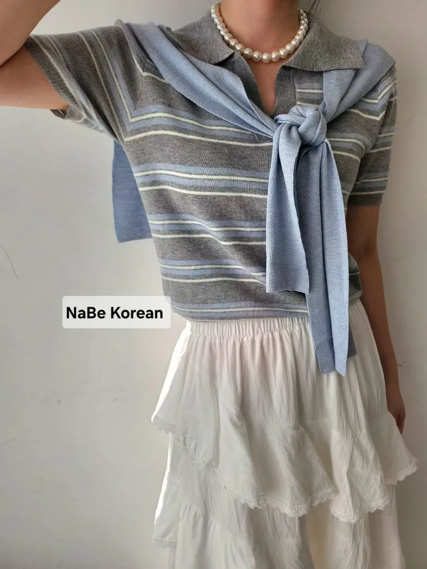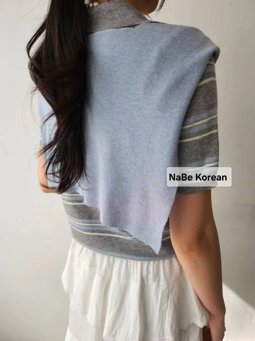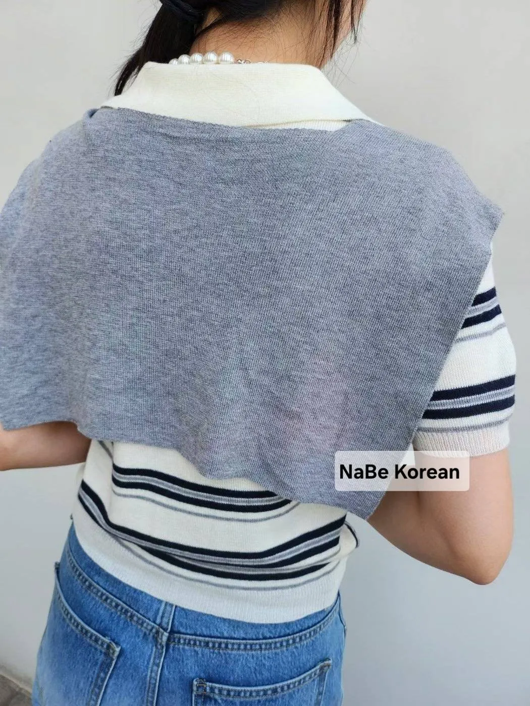 NaBe Korean- 線條質感polo 杉 兩件式 含造型披肩