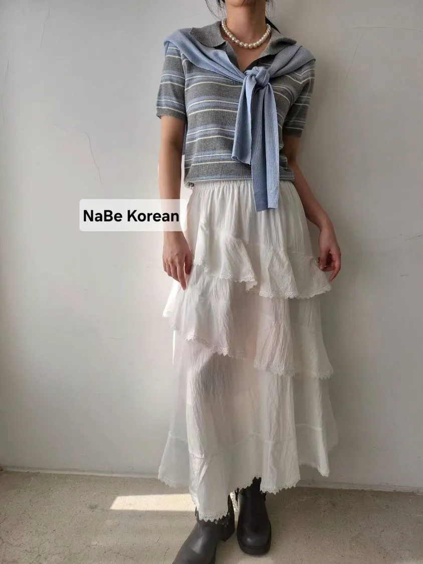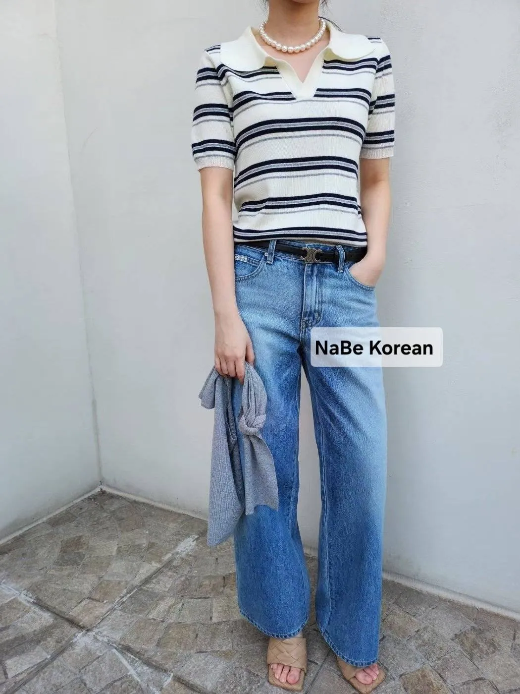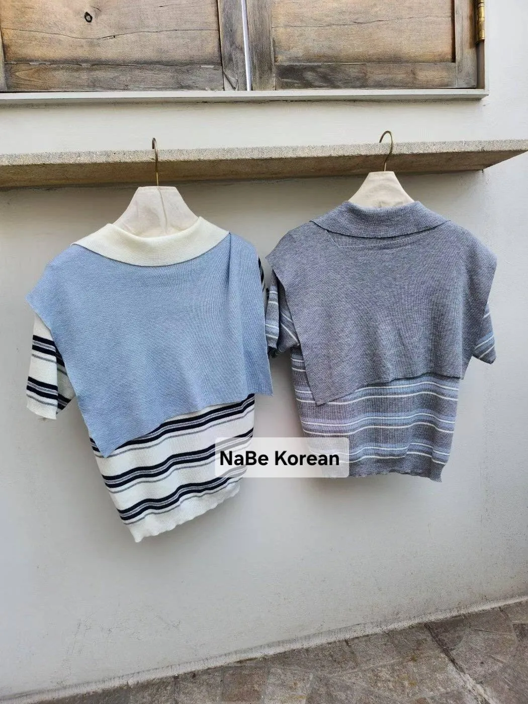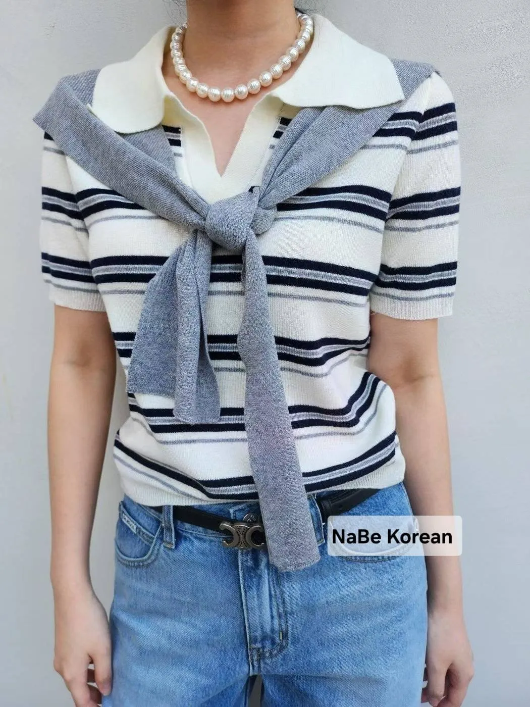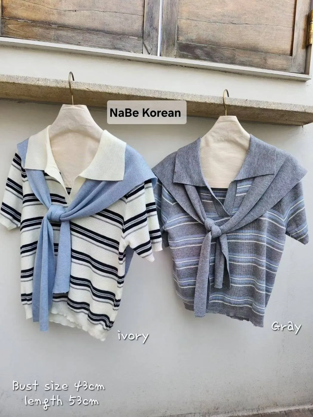 NaBe Korean- 線條質感polo 杉 兩件式 含造型披肩