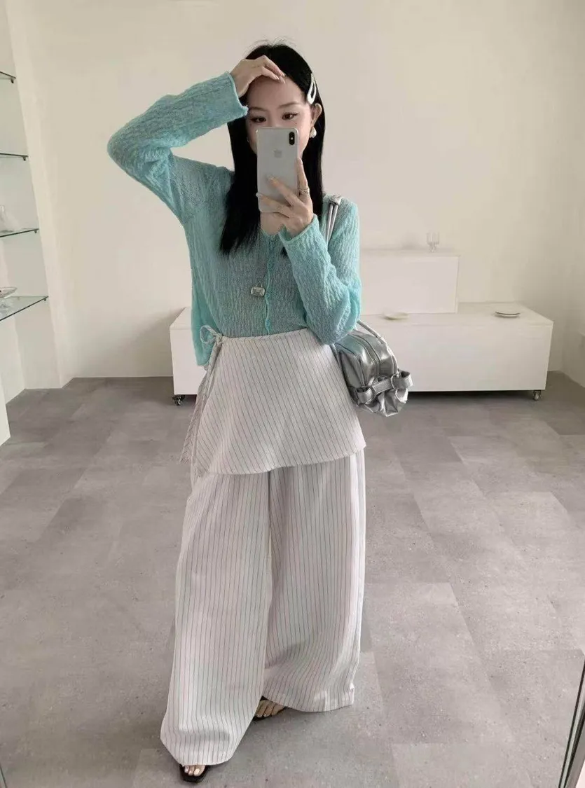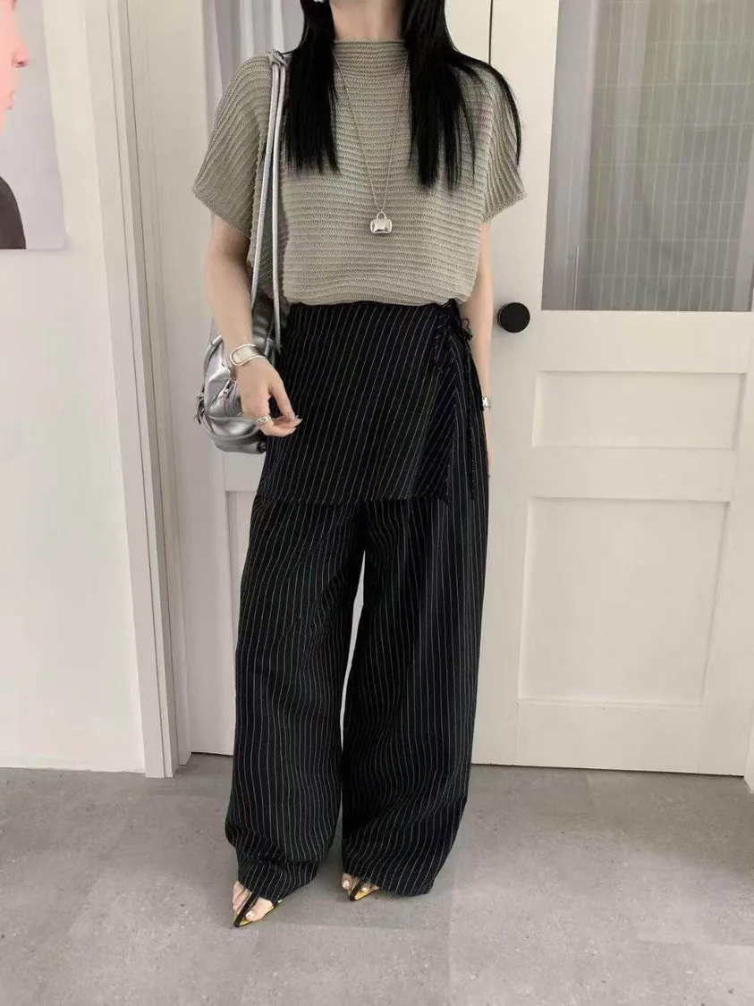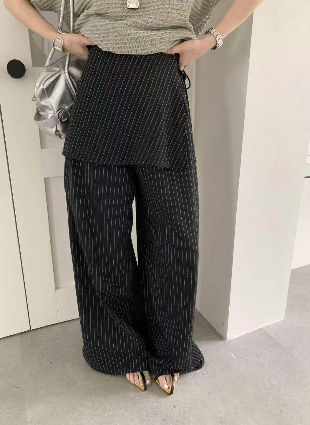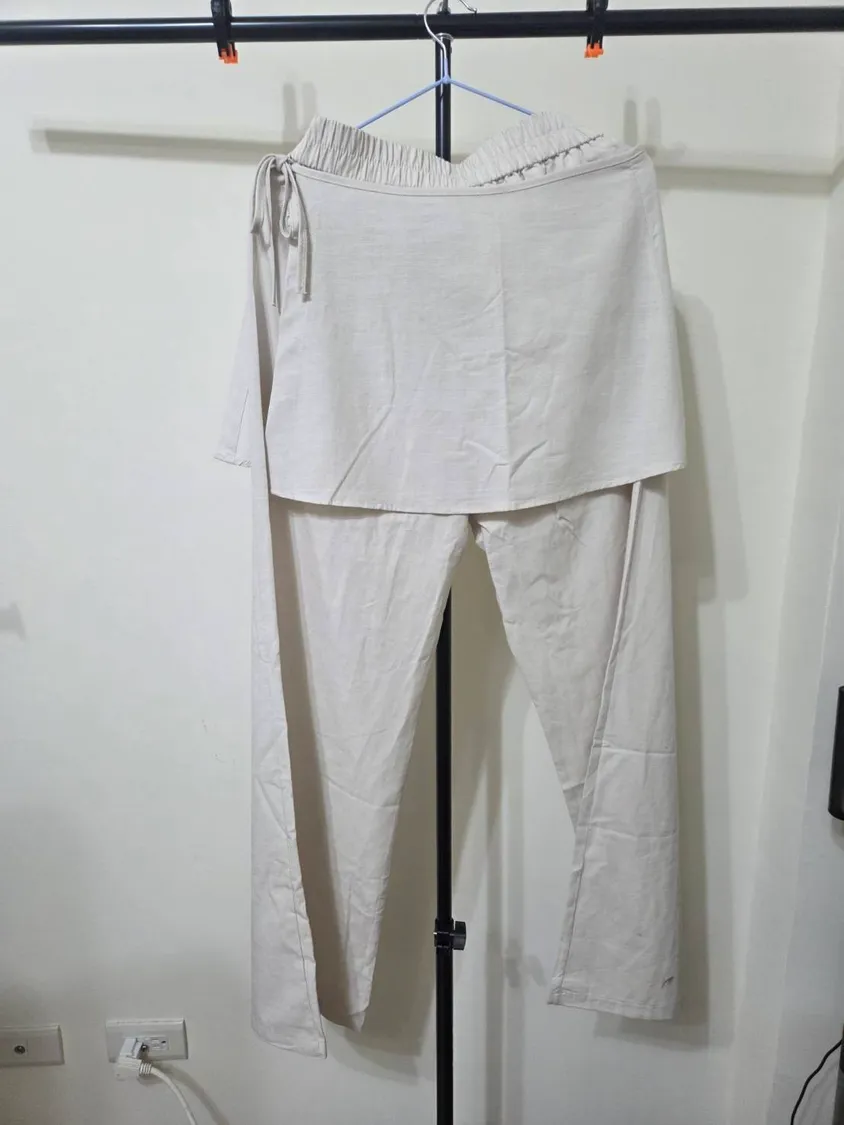 NaBe Korean-棉麻一片裙+寬褲 套組 造型 寬褲 今年流行款