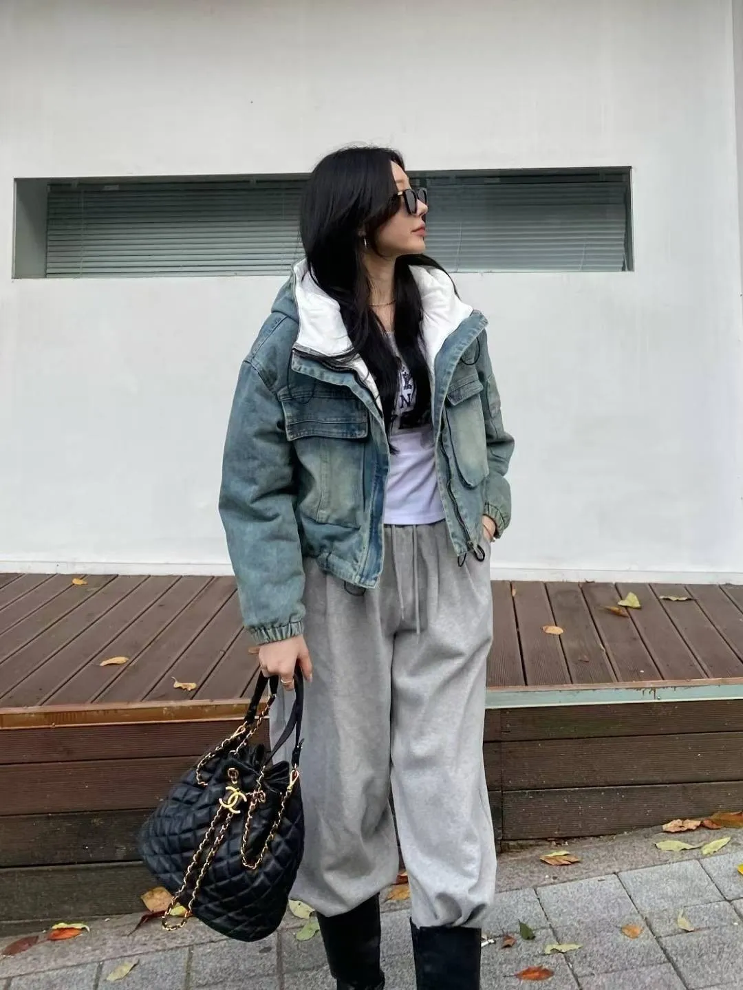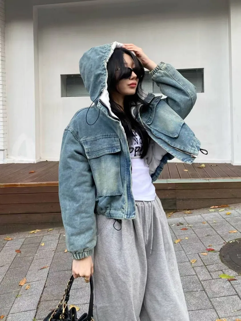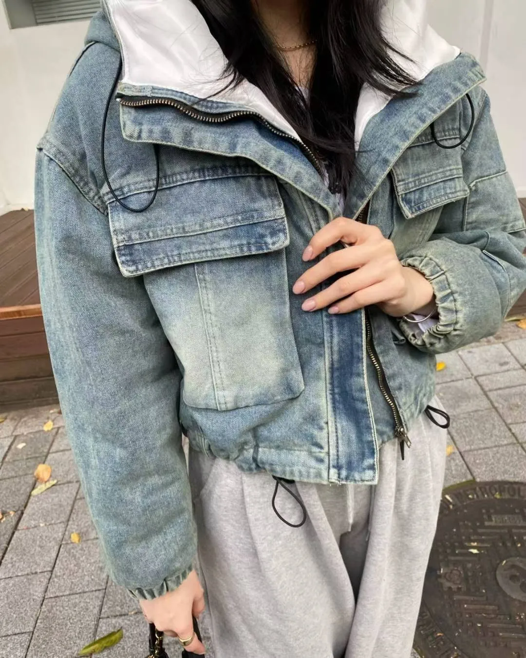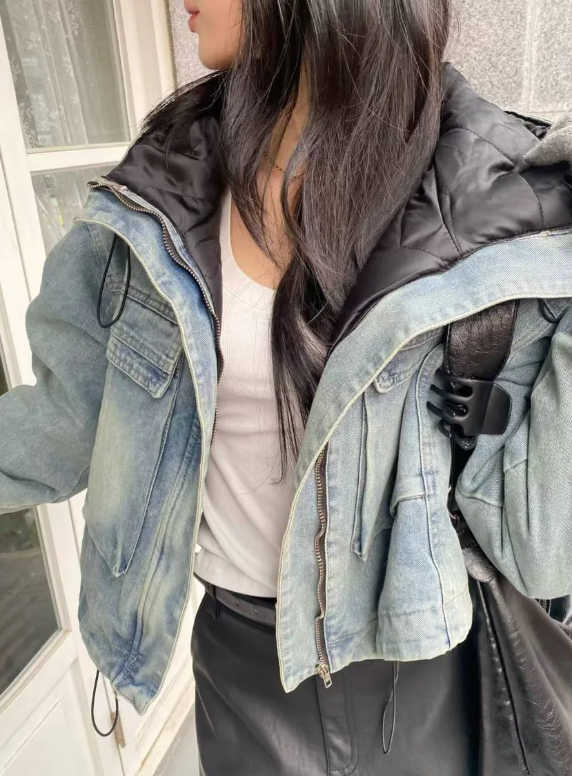 牛仔工功裝帥氣造型舖棉外套