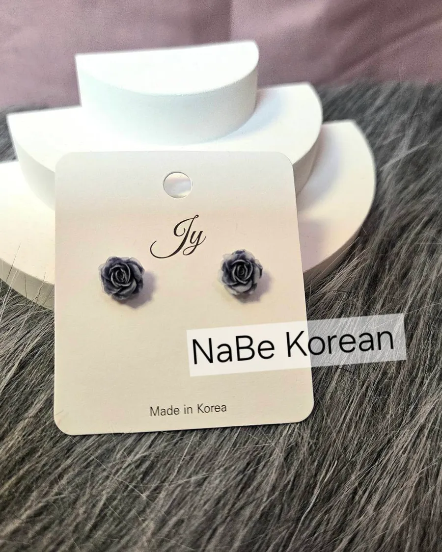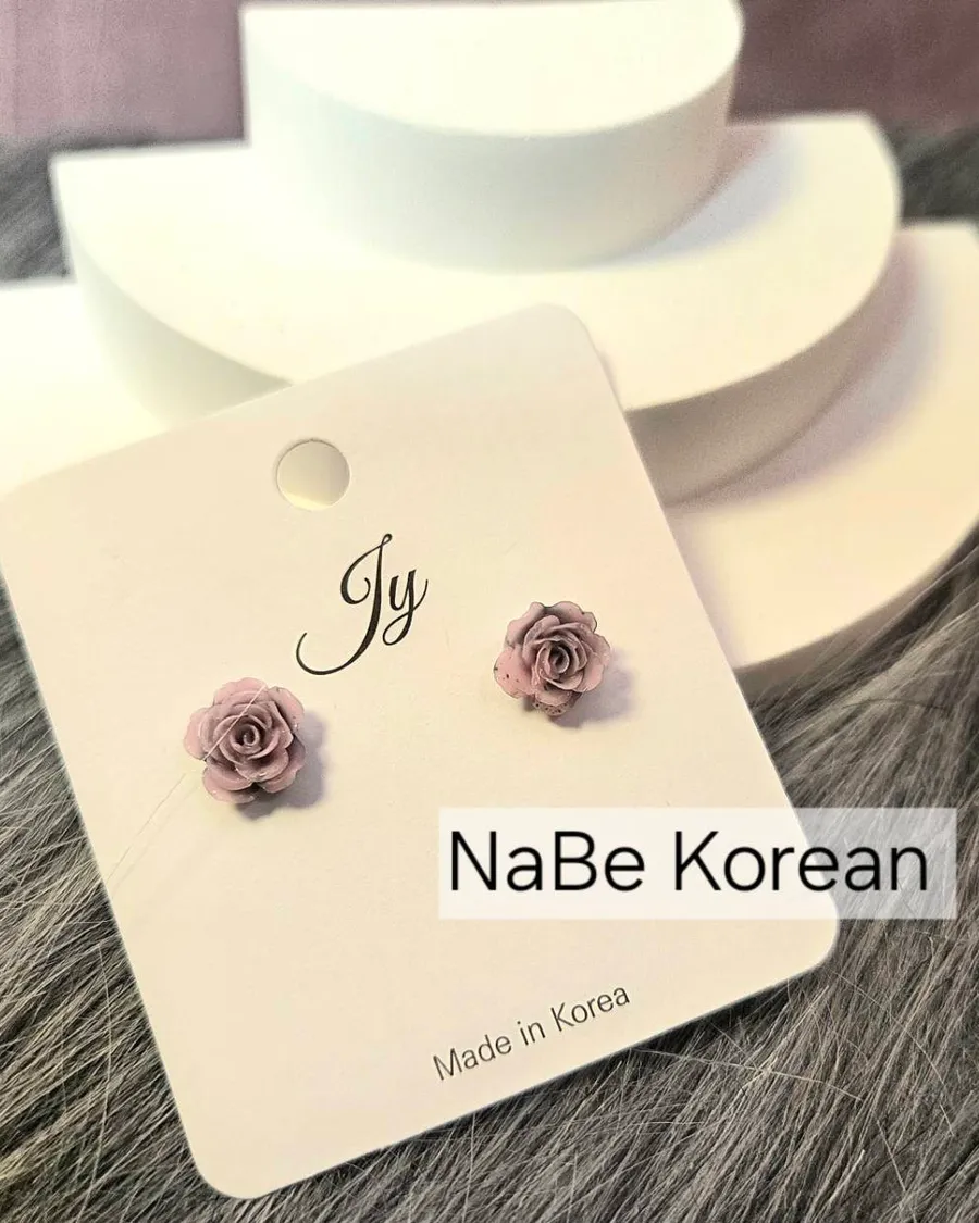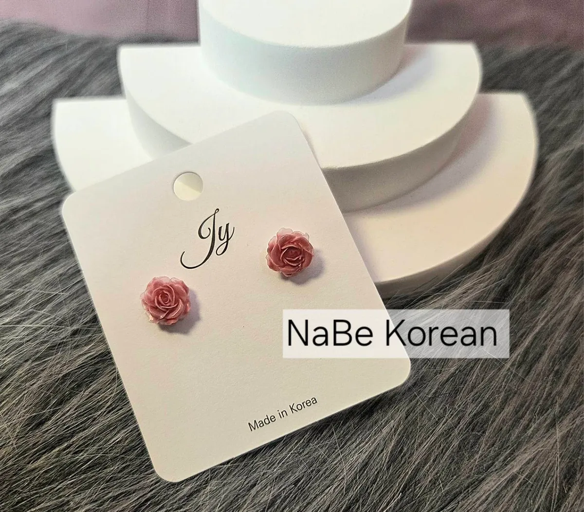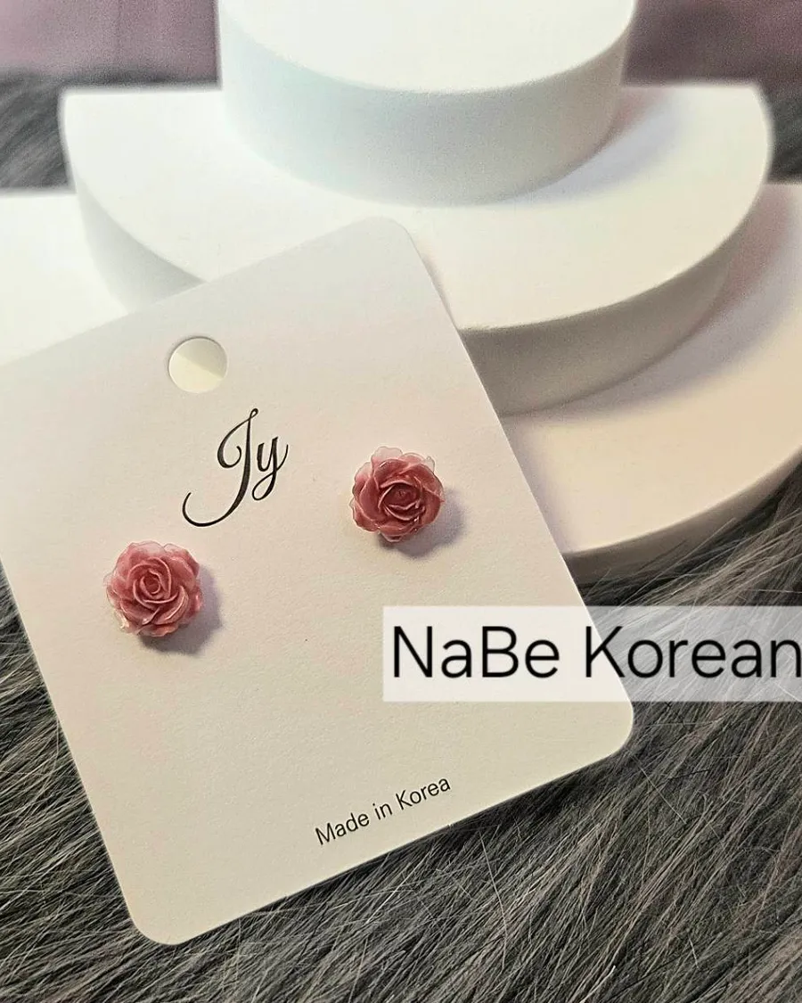 NaBe Korean-玫瑰花細緻耳環 純銀針