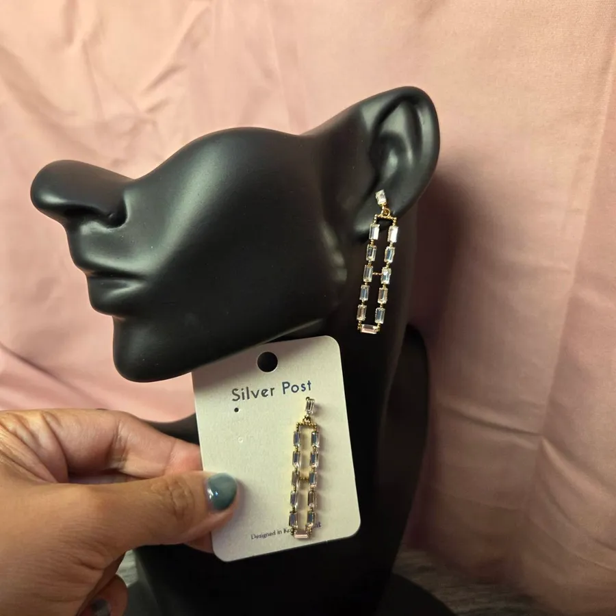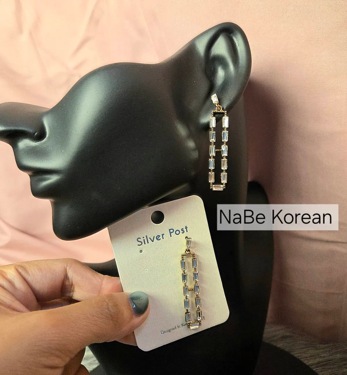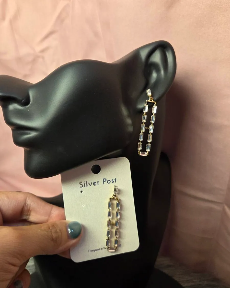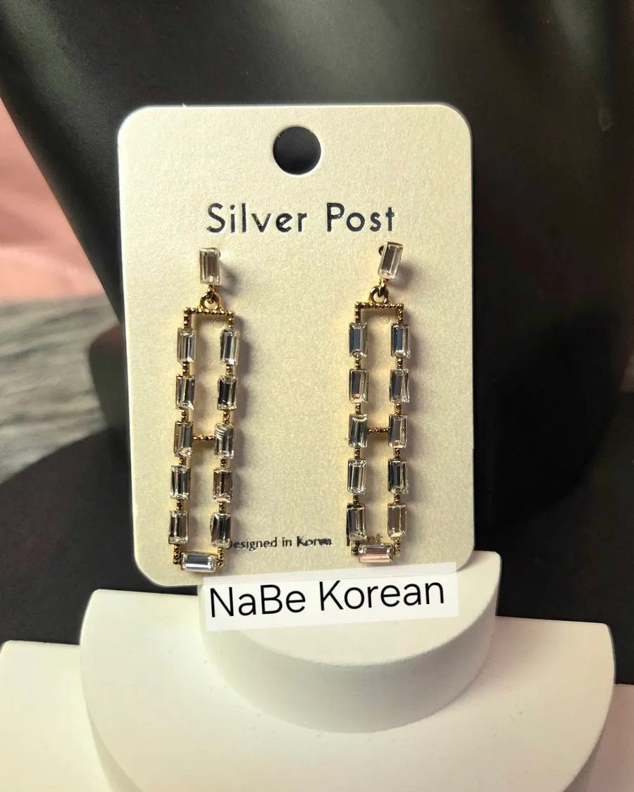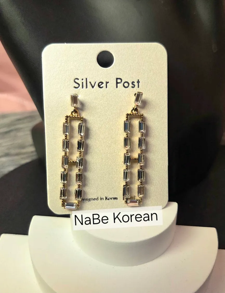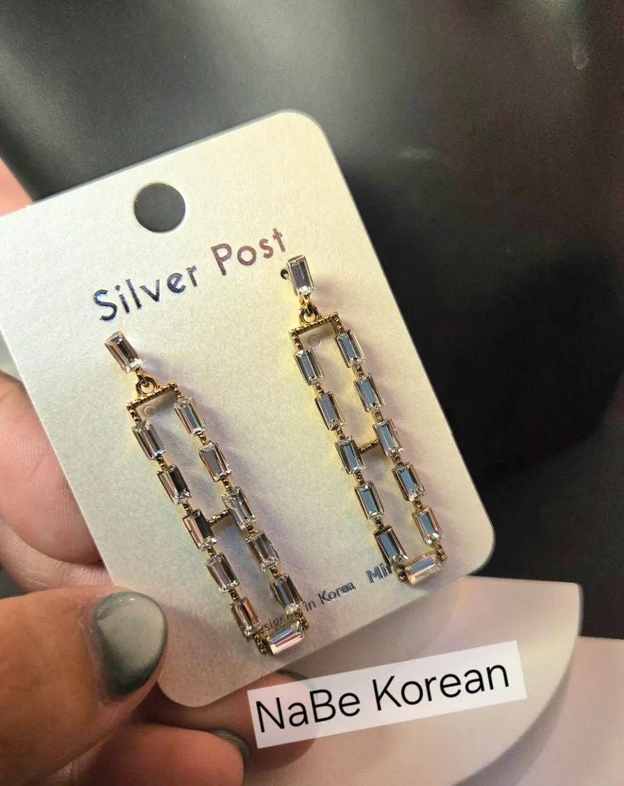 NaBe Korean-鋯石精緻方程式長方形造型耳環