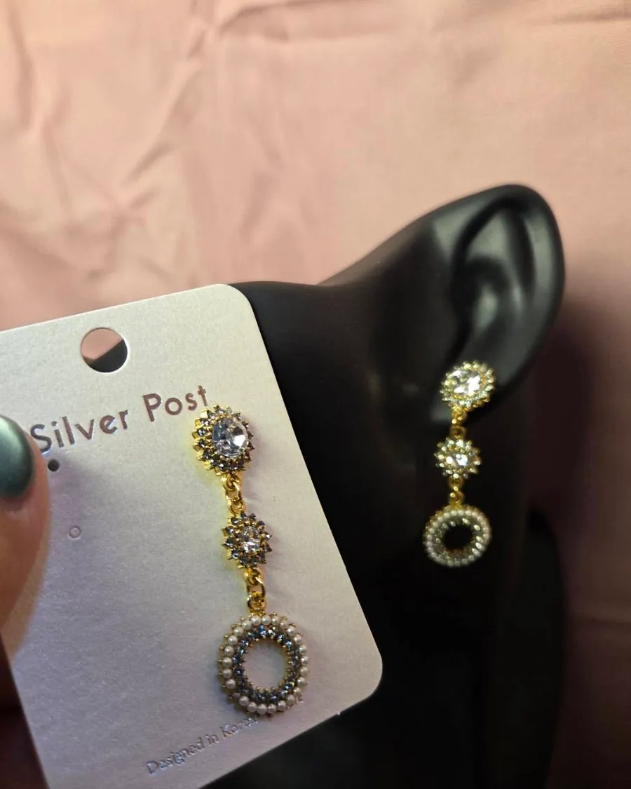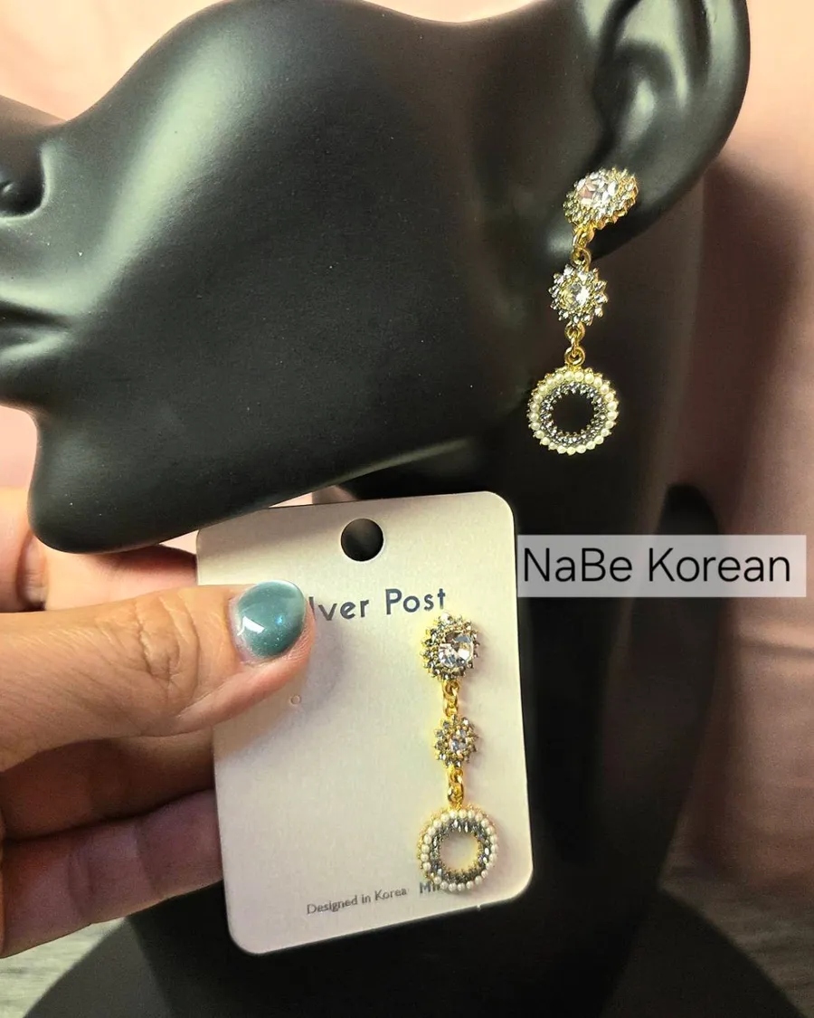 NaBe Korean-法式女皇璀璨永恆之信垂墜式耳環