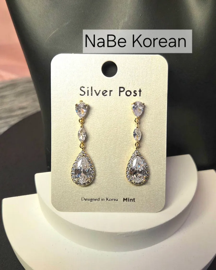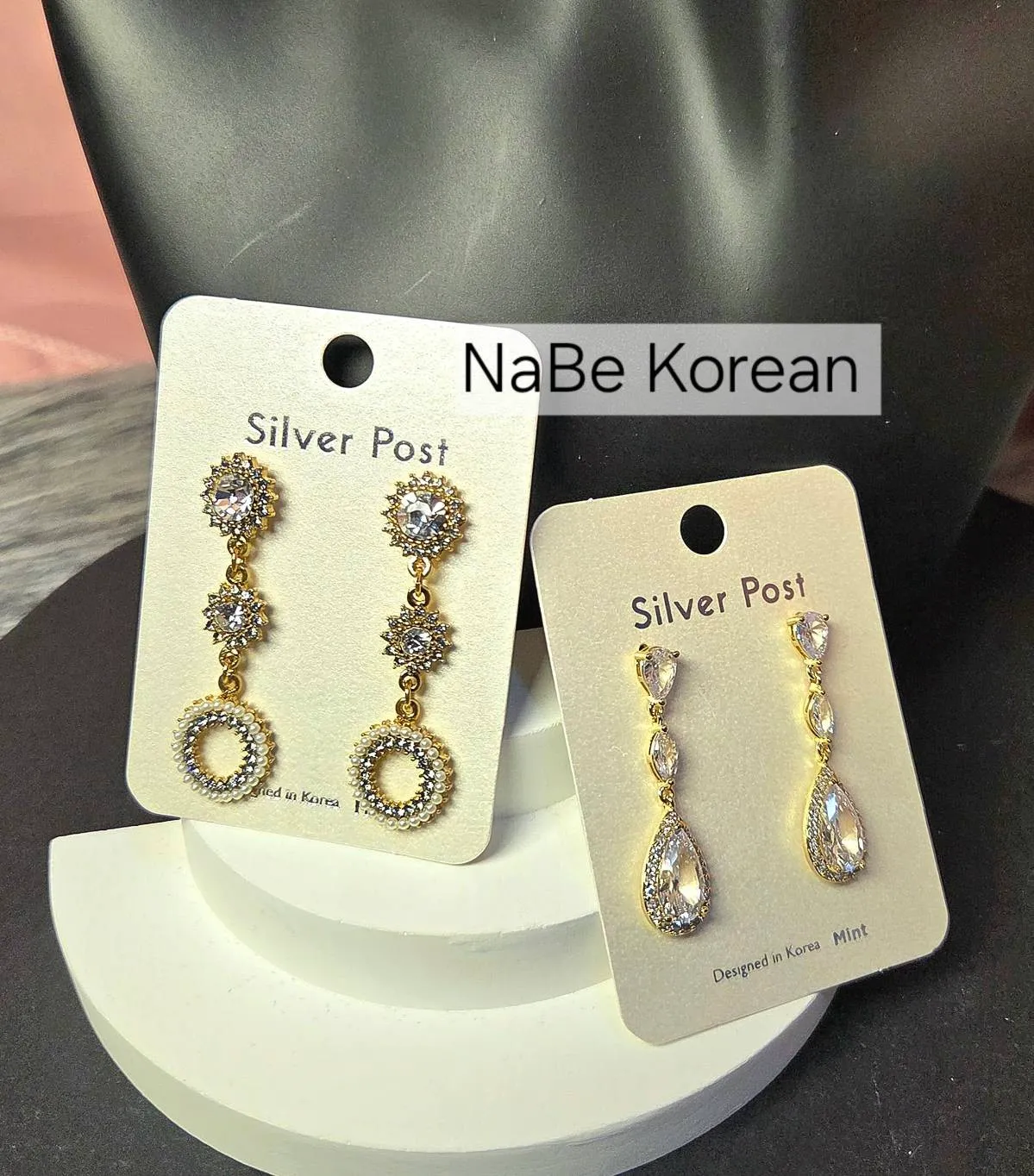 NaBe Korean-法式優雅氣質水鑽貴族耳環
