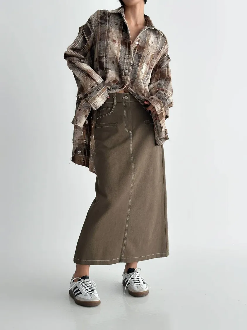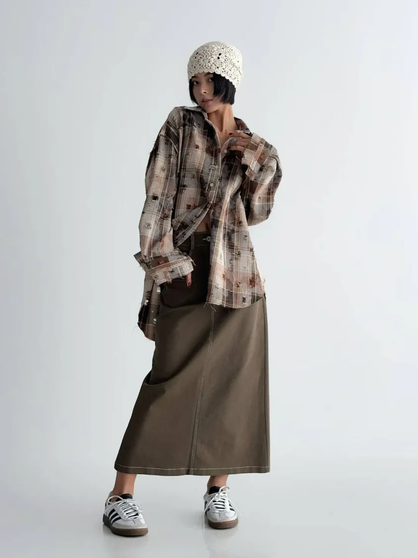 NaBe Korean-個性刷破造型襯衫