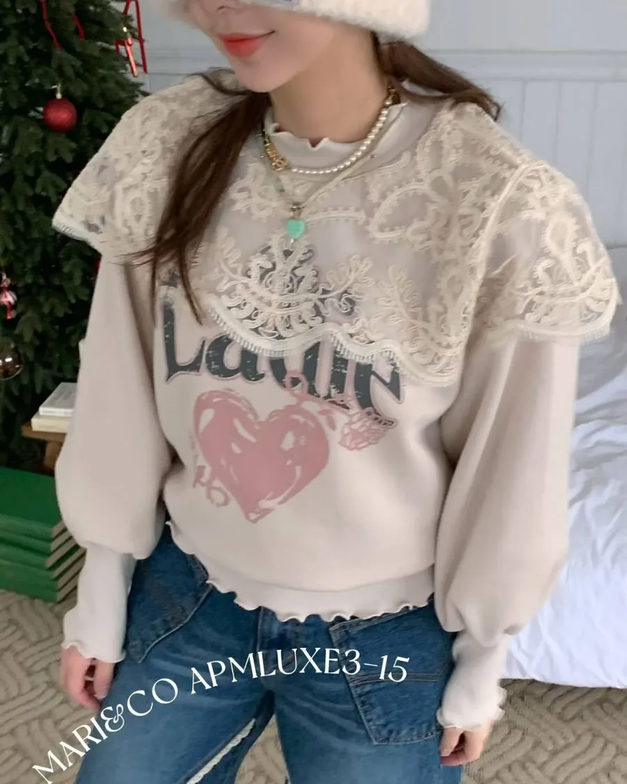 NaBe Korean-氣質女孩蕾絲設計質感上衣