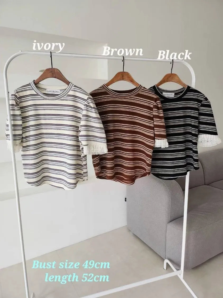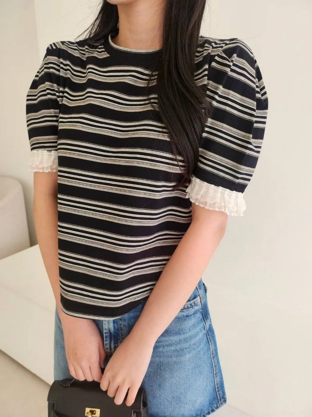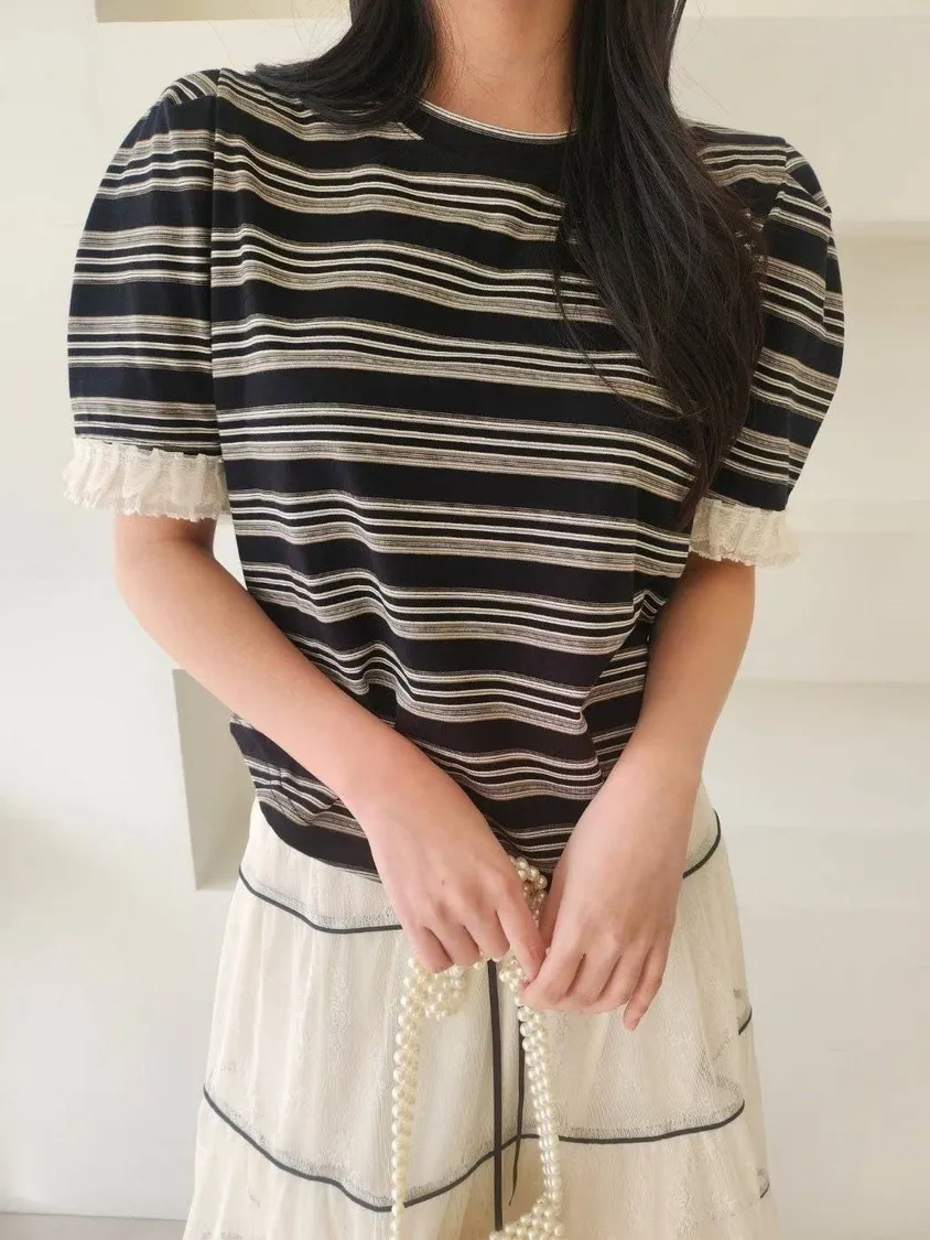 NaBe Korean-秋裝蕾絲袖口公主袖氣質上衣