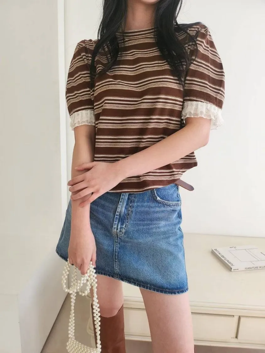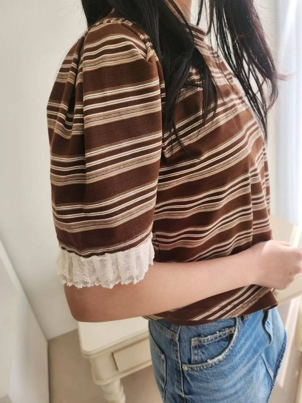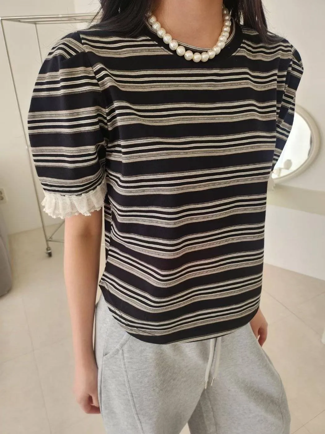 NaBe Korean-秋裝蕾絲袖口公主袖氣質上衣