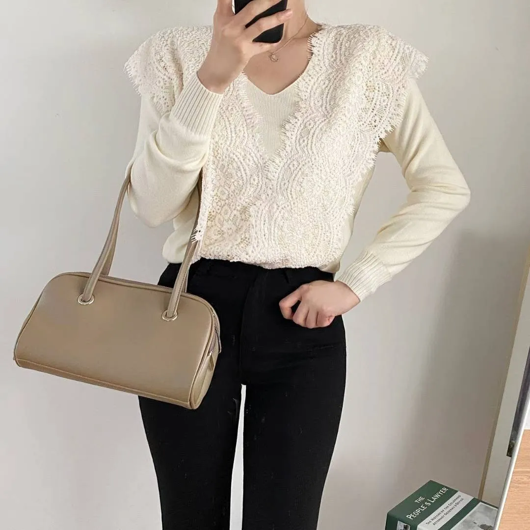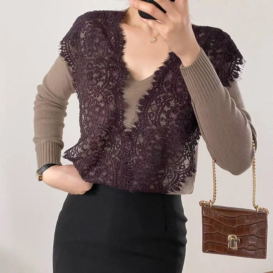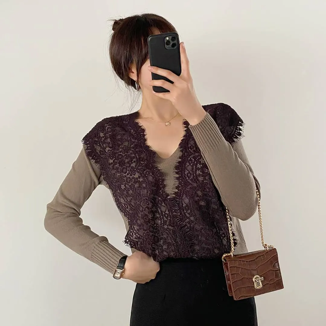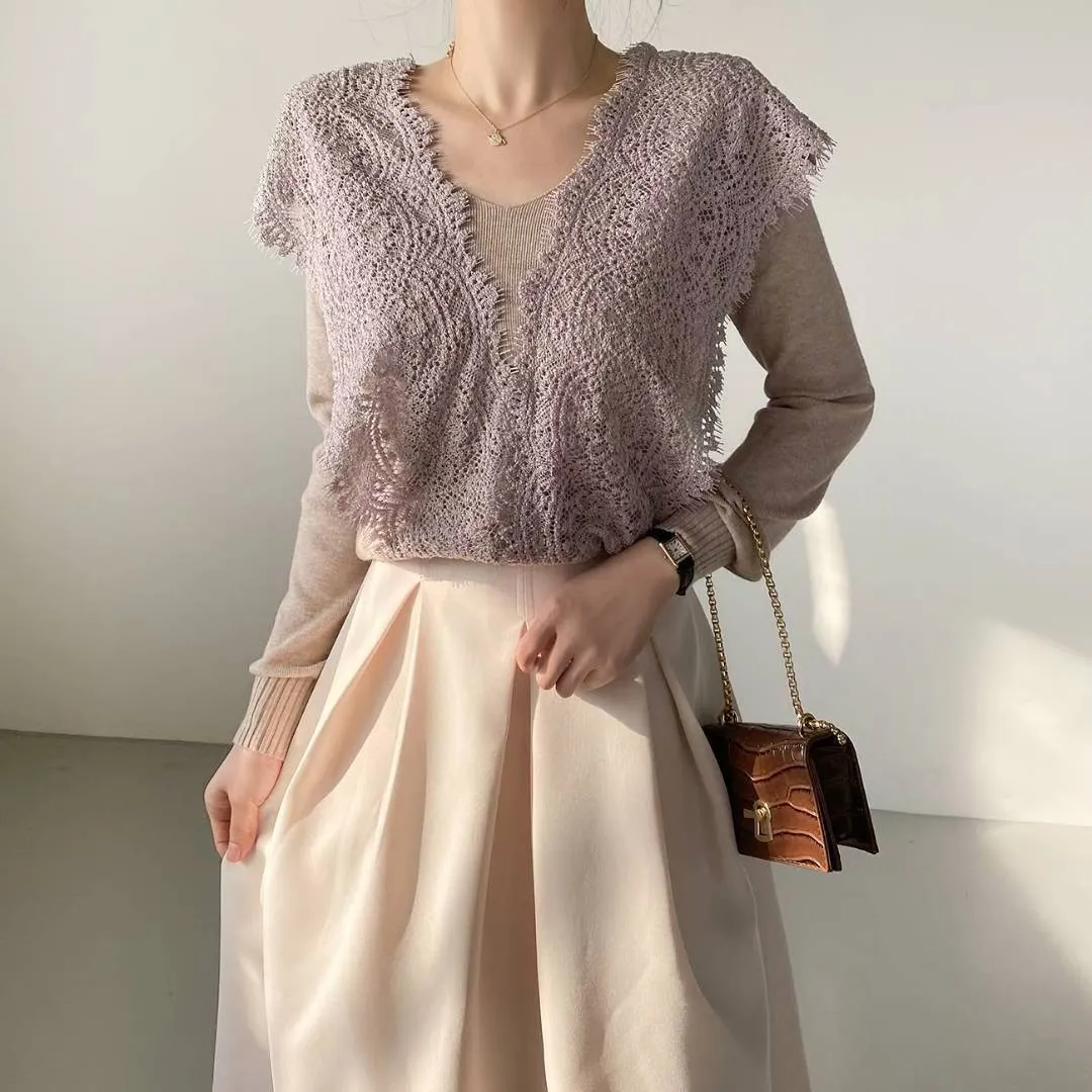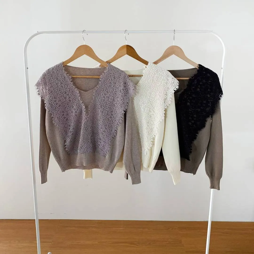 NaBe Korean-優雅蕾絲設計針織上衣