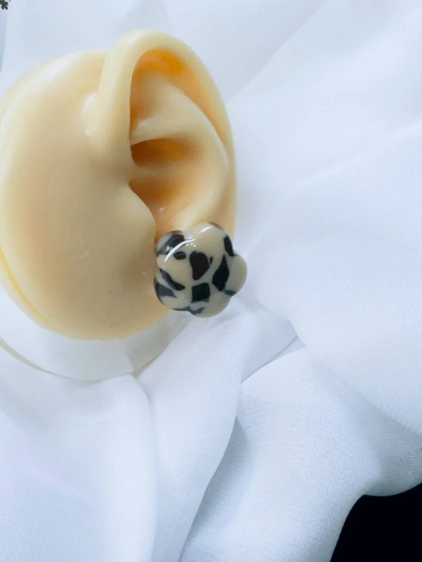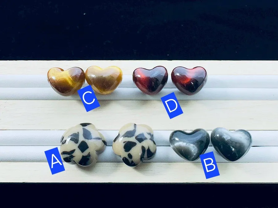 NaBe Korean-壓克力造型 立體豆豆心 豆豆花花 款式耳針式耳環