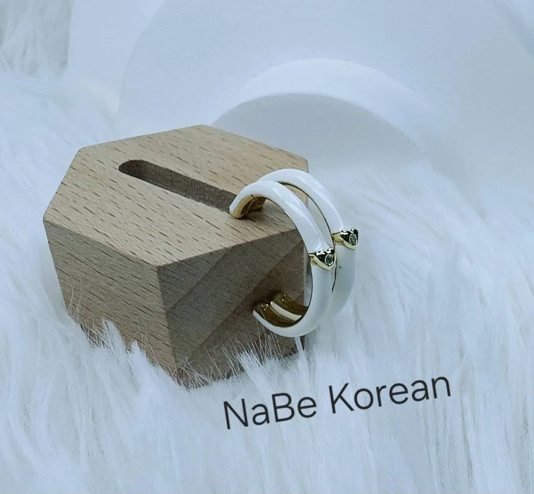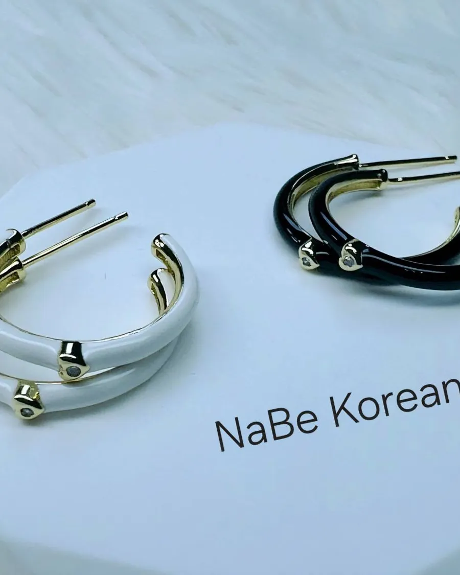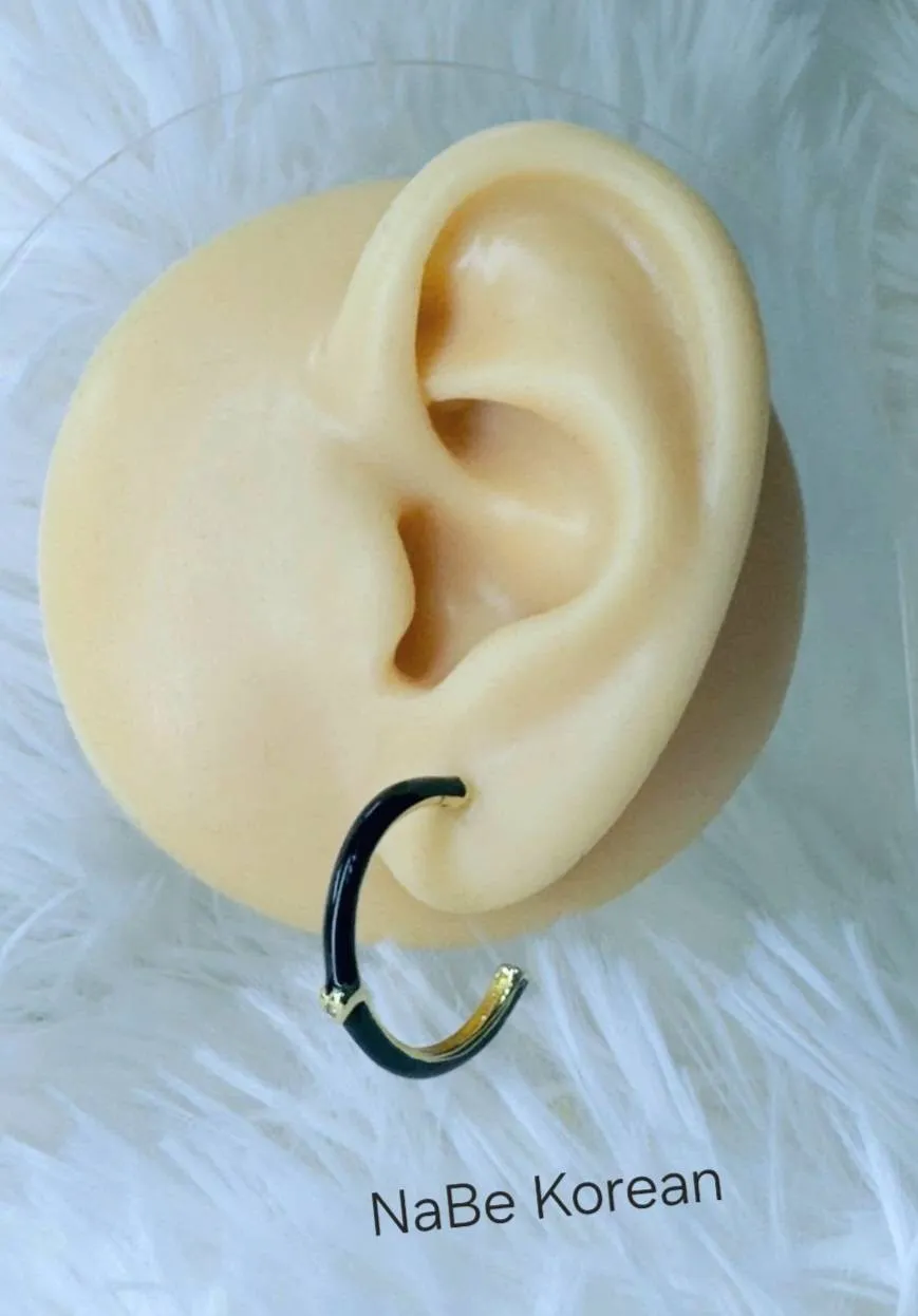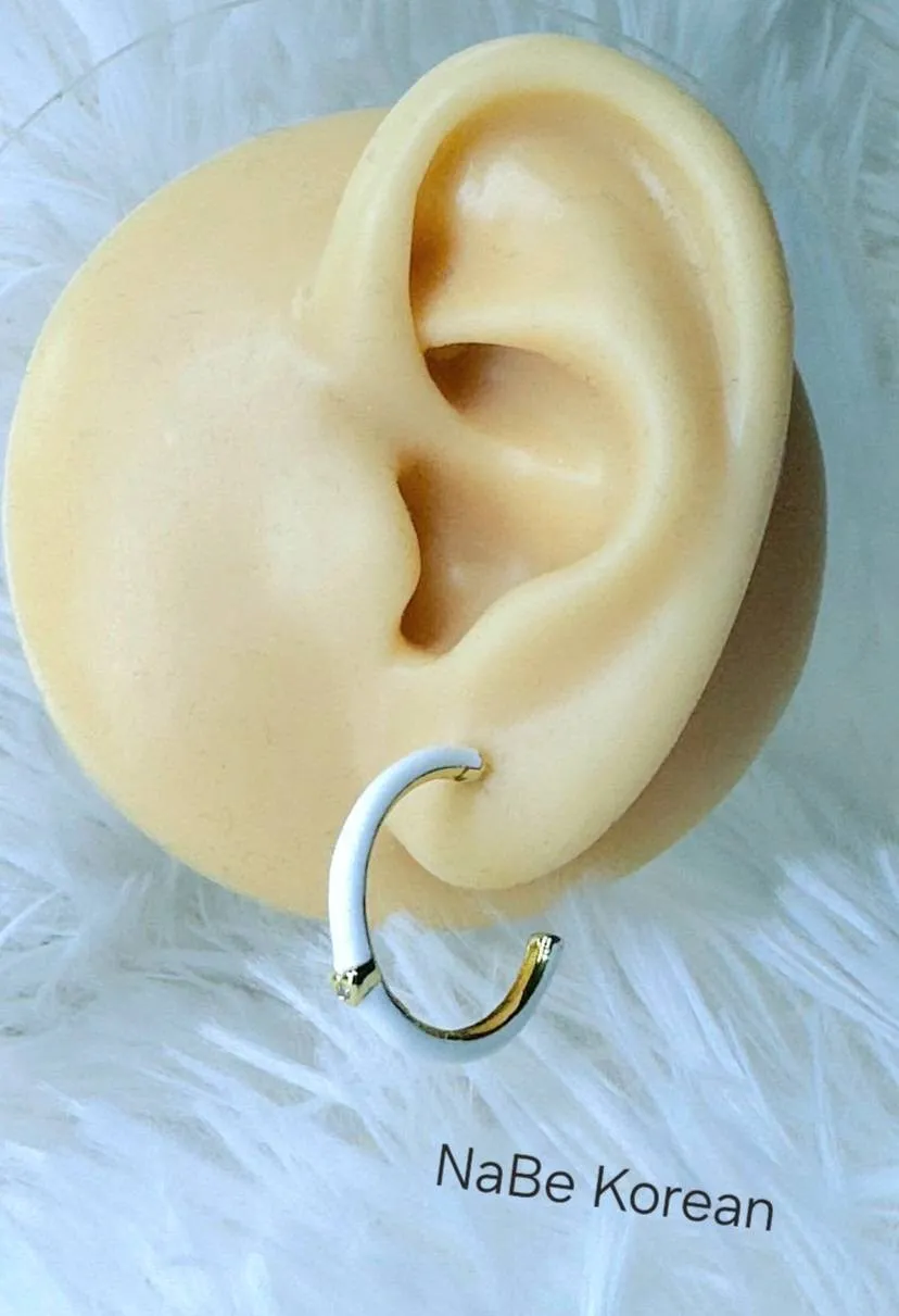 NaBe Korean-簡約 C圈 小愛心 耳針式 耳環 兩色