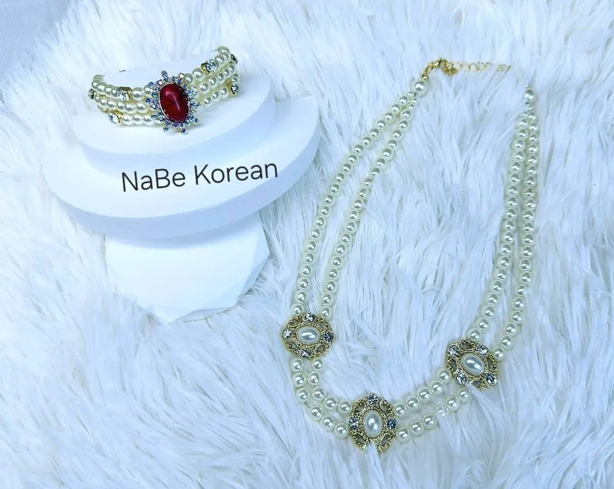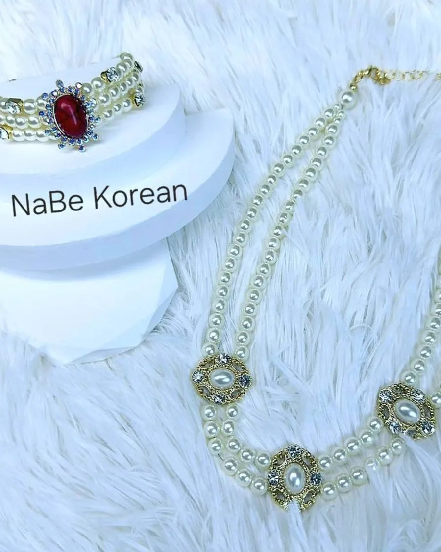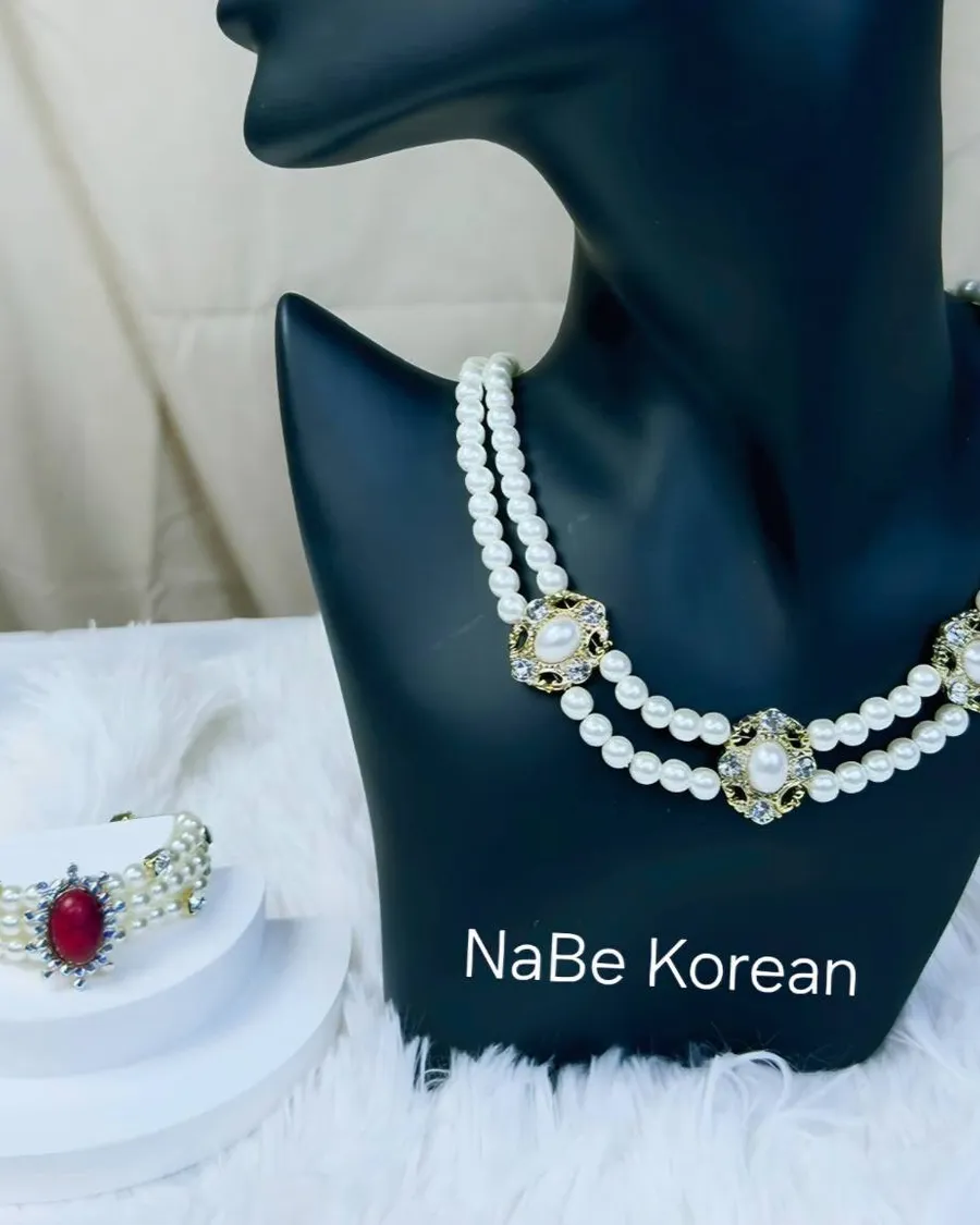 NaBe Korean-復古珍珠寶石項鍊/手鍊