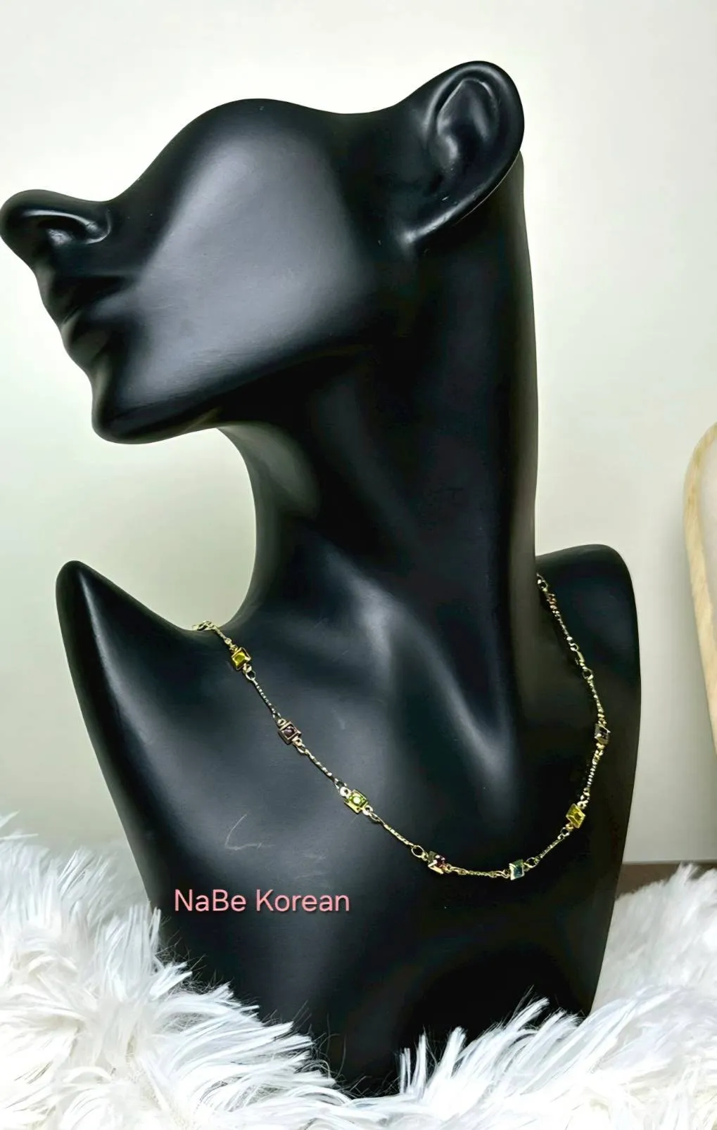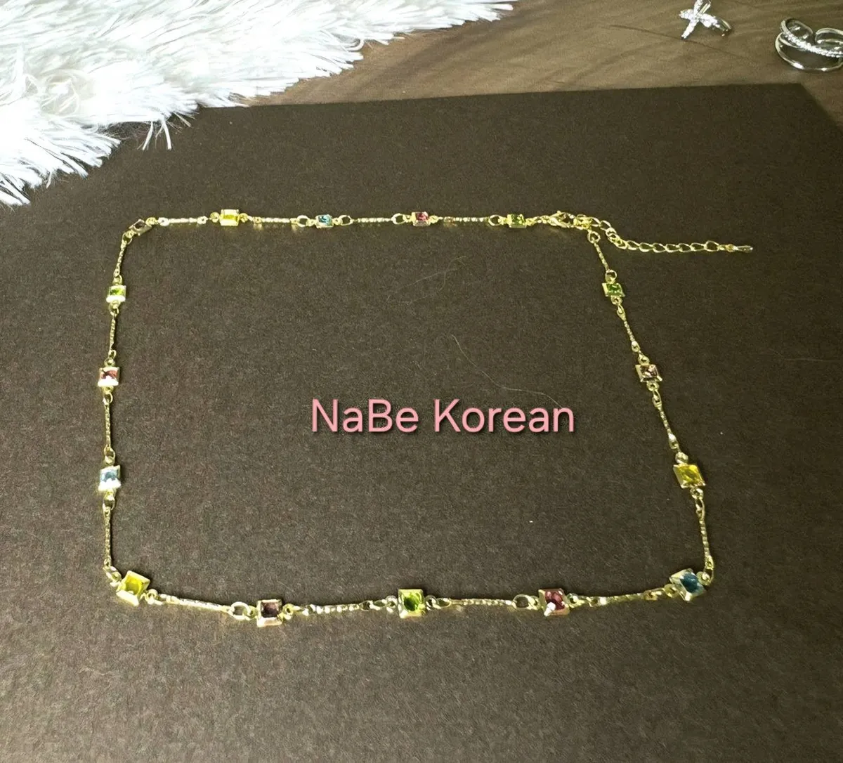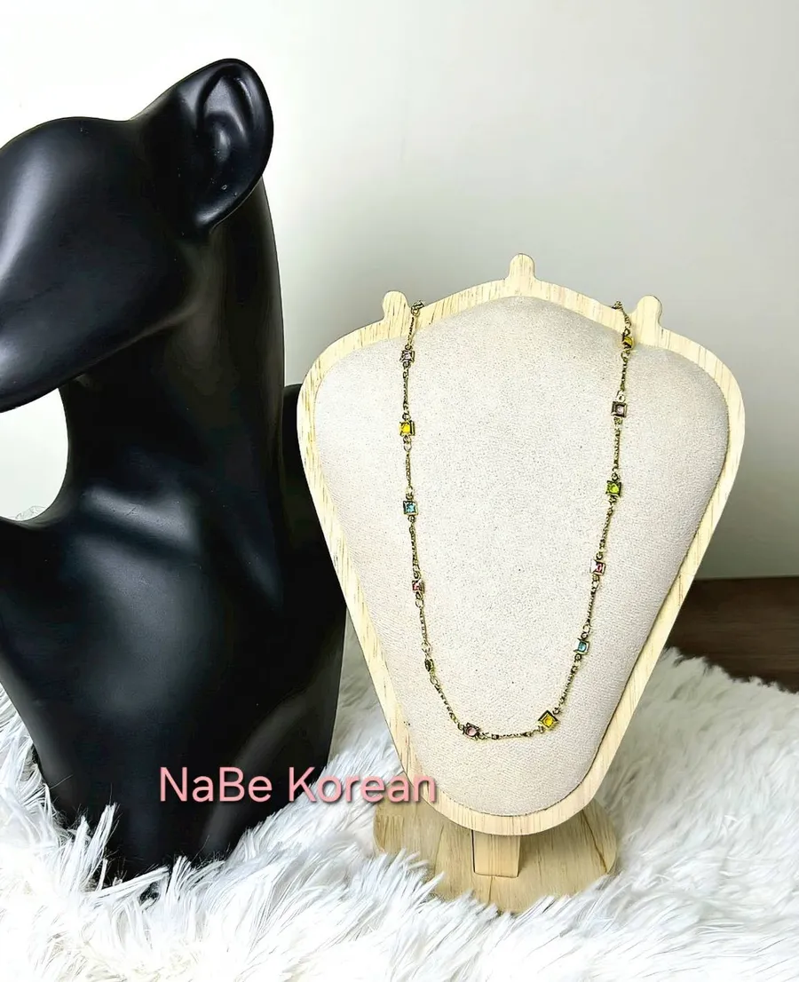 彩色水晶五色方型項鍊