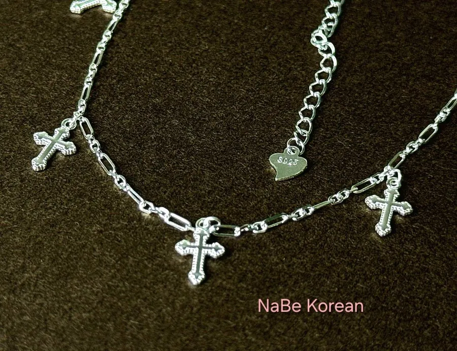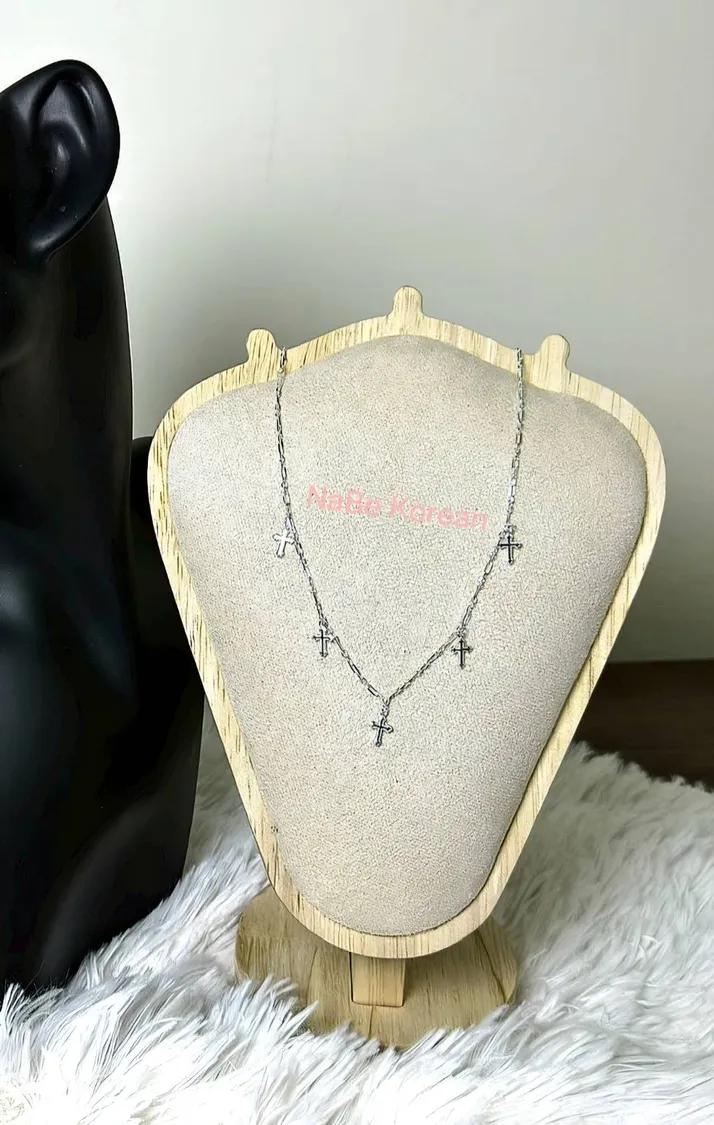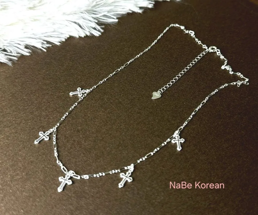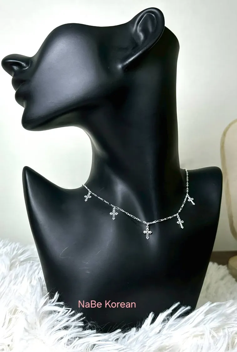 NaBe Korean-十字架五個串聯層次感純銀項鍊