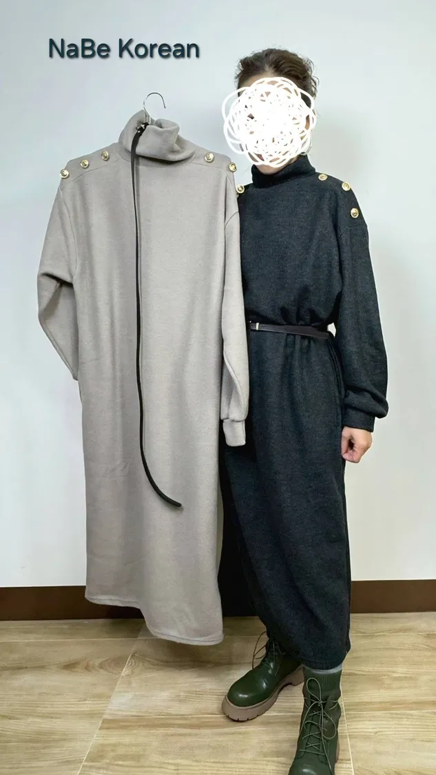 NaBe Korean-羊毛高質感修身洋裝(含腰帶)現貨